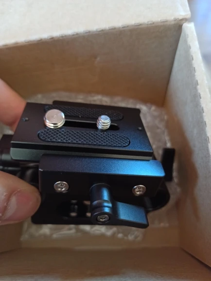 Great sturdy (unlike some other ones) height adjustable rail support and QR baseplate. The height adjusting part is not just a single screw, but two vertical (integrated) 15mm(?) rods, making it very strong. Works great with the BMPCC4k + rigging.