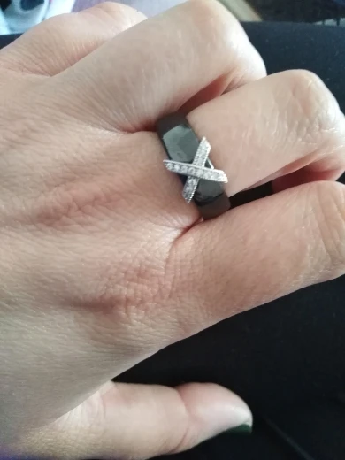 X Cross Ceramic ring with crystal