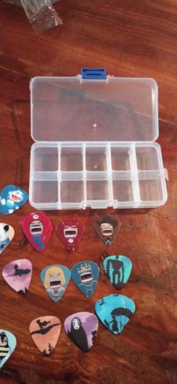 SOACH 50pcs 0.46/.071/1.0mm High quality print Guitar picks Multi-picture mix + 10 grid Box Set Guitar Parts & Accessories