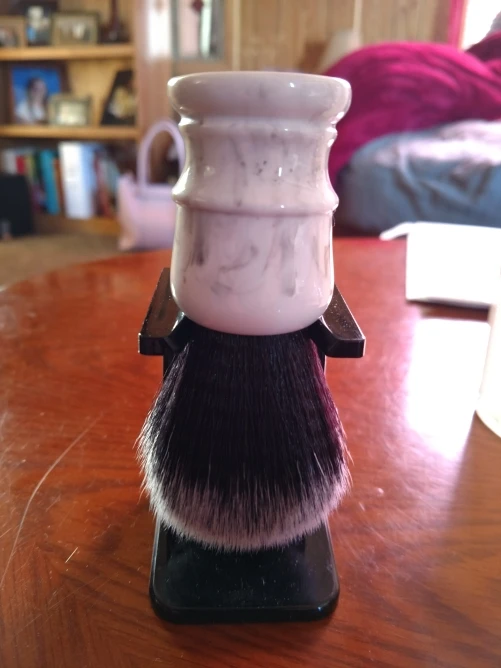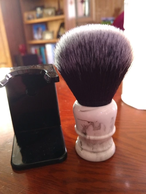awesome brush with a high quality synthetic knot. very soft and it splays out on the face very nicely. would order again.