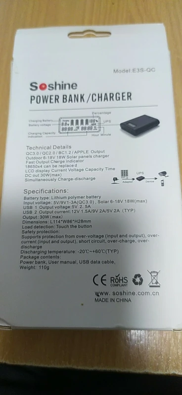 SoShine E3S-QC Quick Charger 30W 18650x4 Portable Power Source Bank Charger