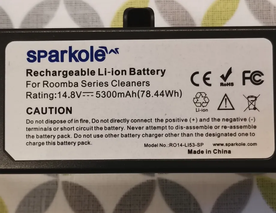 Sparkole 5.3 Ah 14.8V Li-ion Battery for iRobot Roomba 500 600 700 800 Series 555 560 580 620 630 650 760 770 780 790 870 880 R3