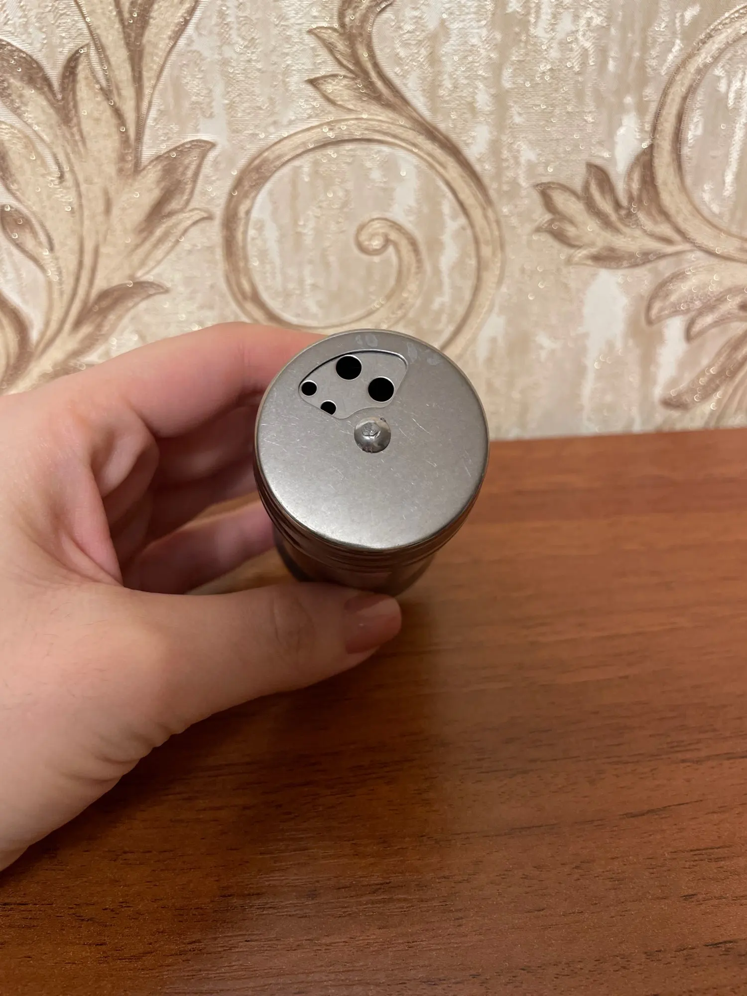 Okay shaker. Easy to use. Grains of salt fall out of the container from the sides of the lid though.