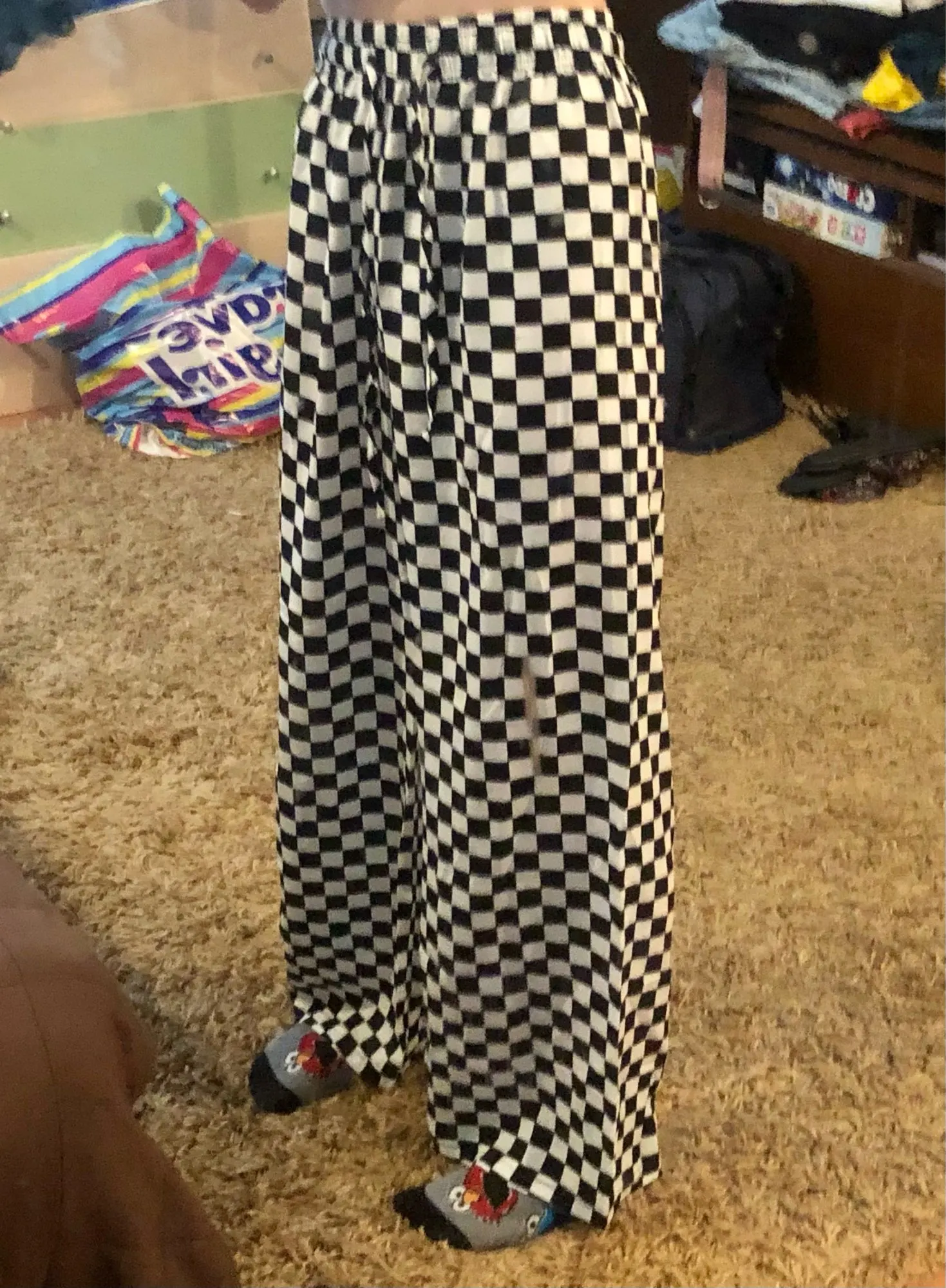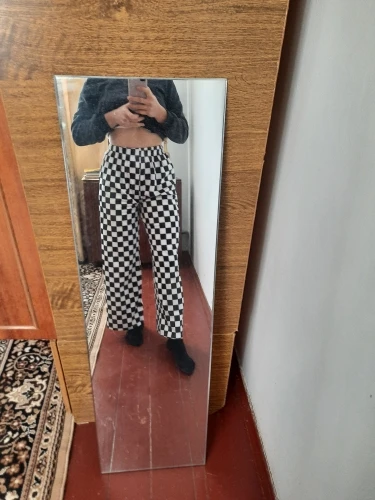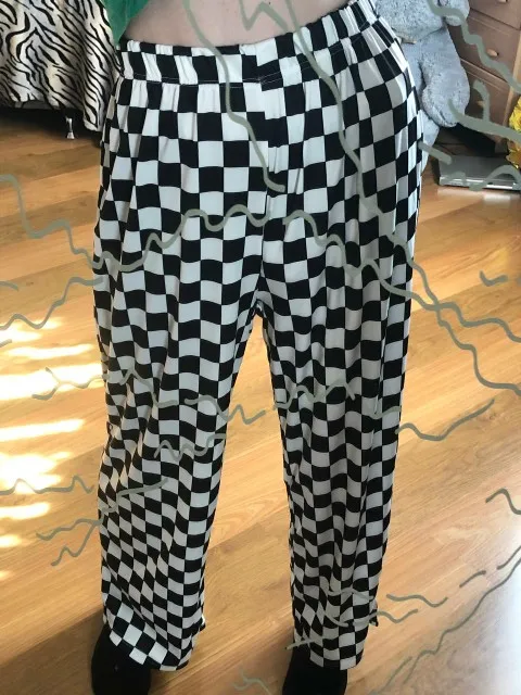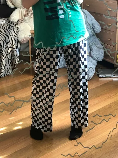 Spring and summer Korea Harajuku BF wind streetwear retro black white checkerboard loose men and women casual wide-leg pants