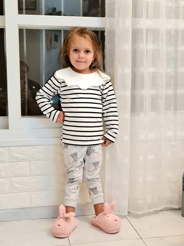 Spring Kids Girls T-shirt Children Long Sleeve Pan Collar Striped Tees Fashion Baby Girl O-Neck Blouse Tee Tops Lovely Clothes
