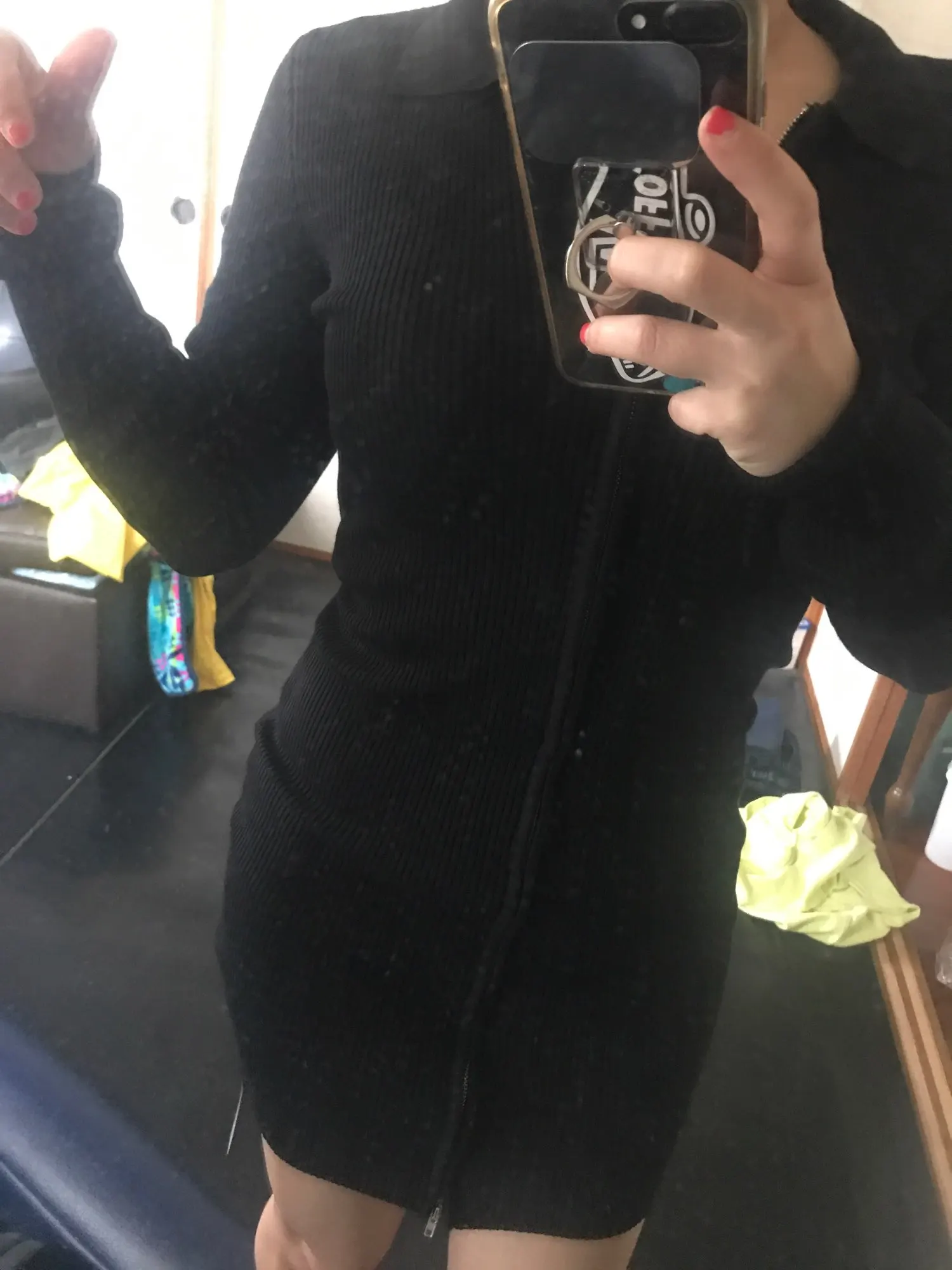 Spring new street casual stretch wild knit zipper dress women, solid color sexy tight lapel bottoming long sleeve dress women