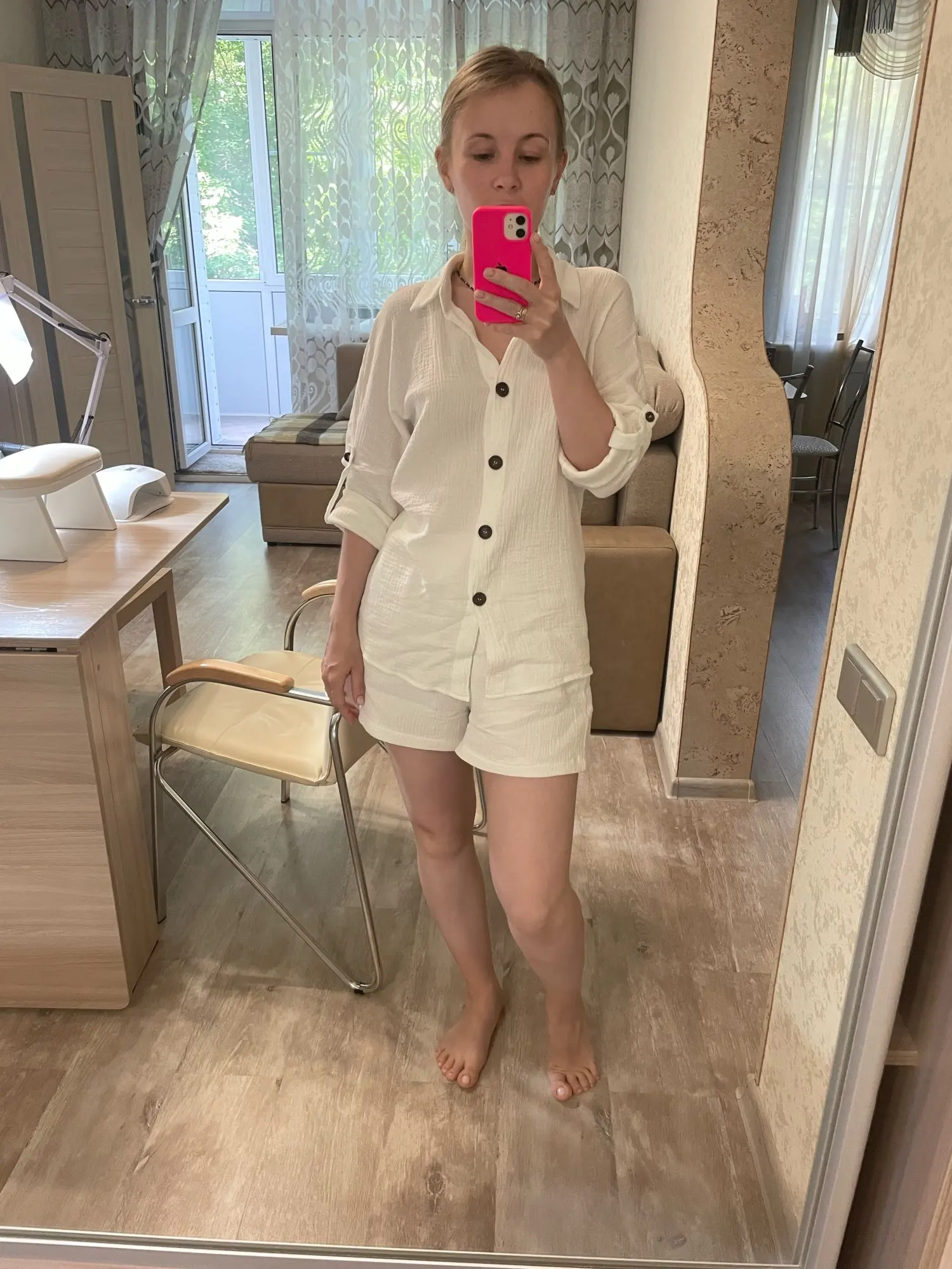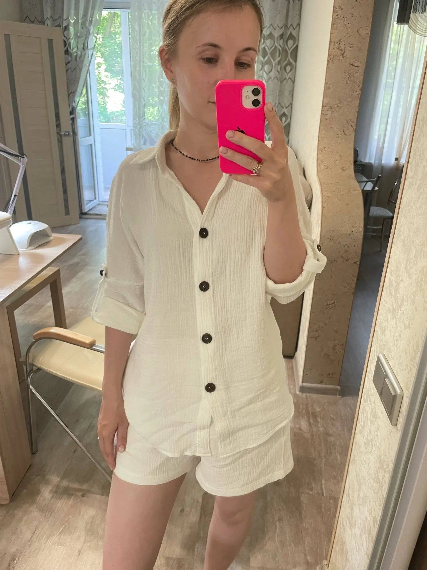 Spring Summer Two Piece Set Pullover Tracksuit Casual Outfit Suits Women White Shirt Blouse Tops Linen Shorts Pants 2 Piece Sets