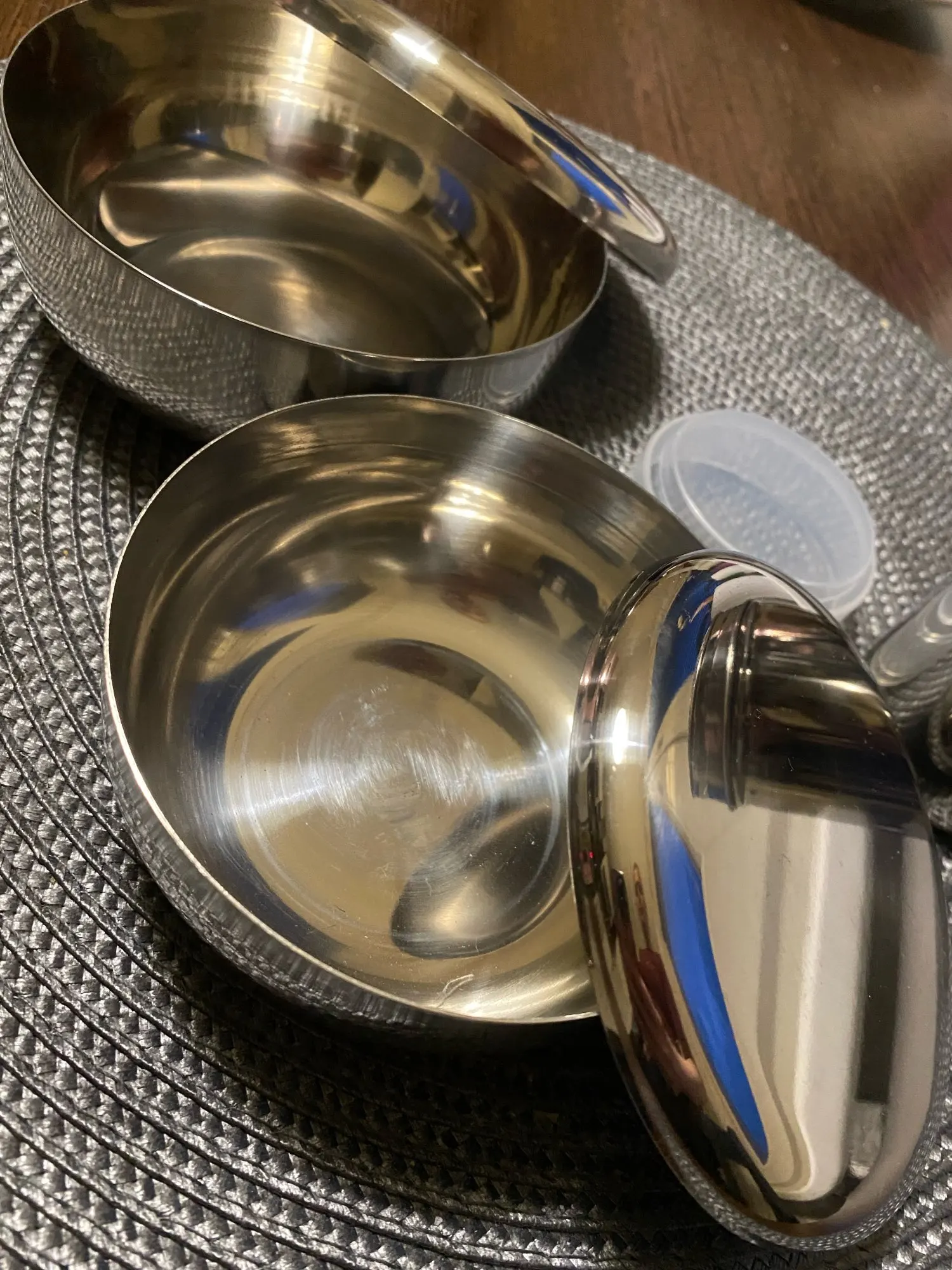 very nice bowls the lids fit real close so they're not loose they slide right on but it's a close enough fit that you have to push it on you can't just like sit over top and have it drop on it's not a click on or anything but they're really well made stainless steel bowls