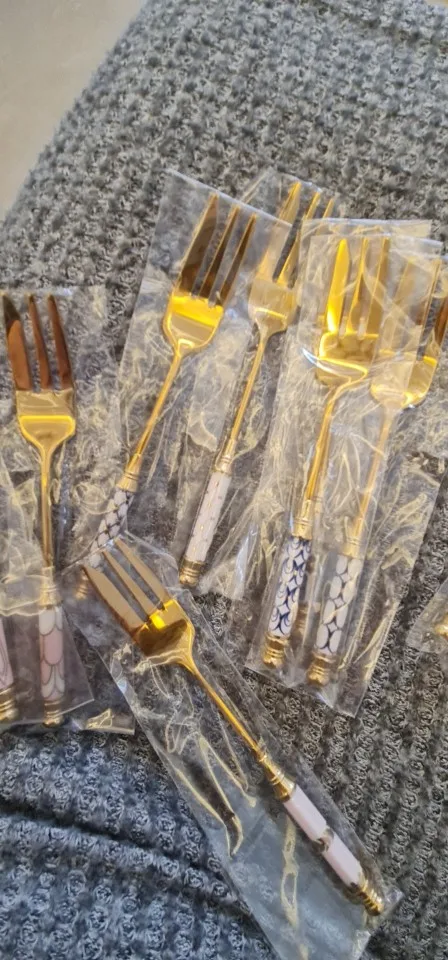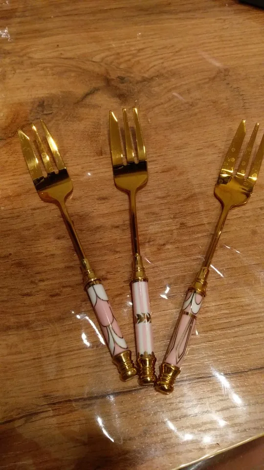 Stainless Steel Gold Cake Dessert Forks Fruit Fork Ceramic Long Handle Brilliant Used For Cake in Party Snail Fork Restaurant