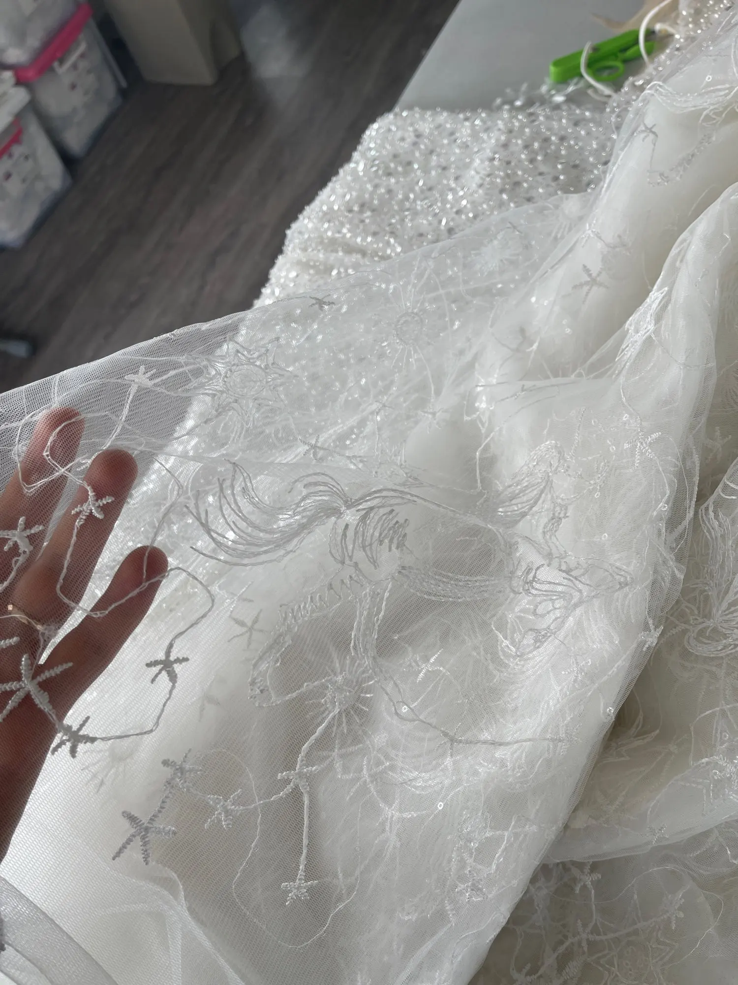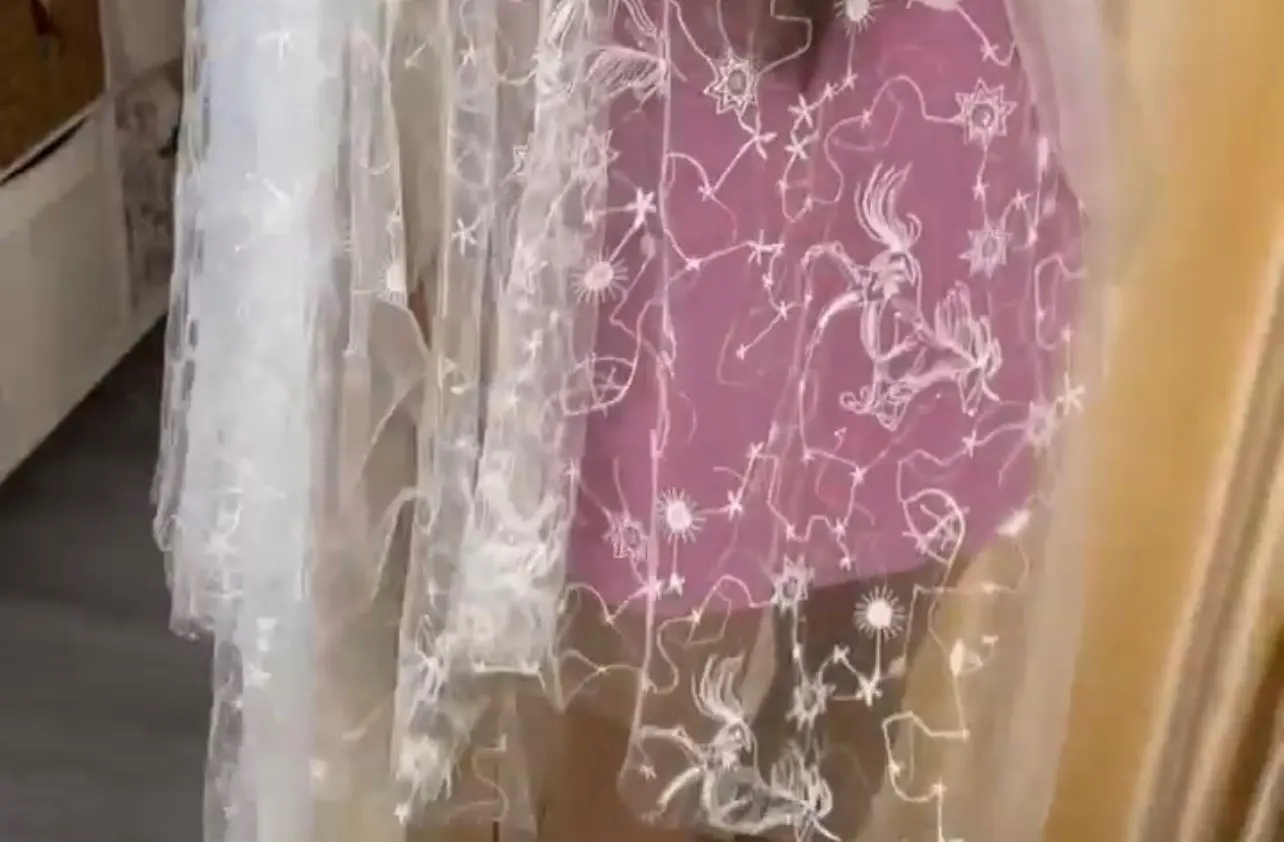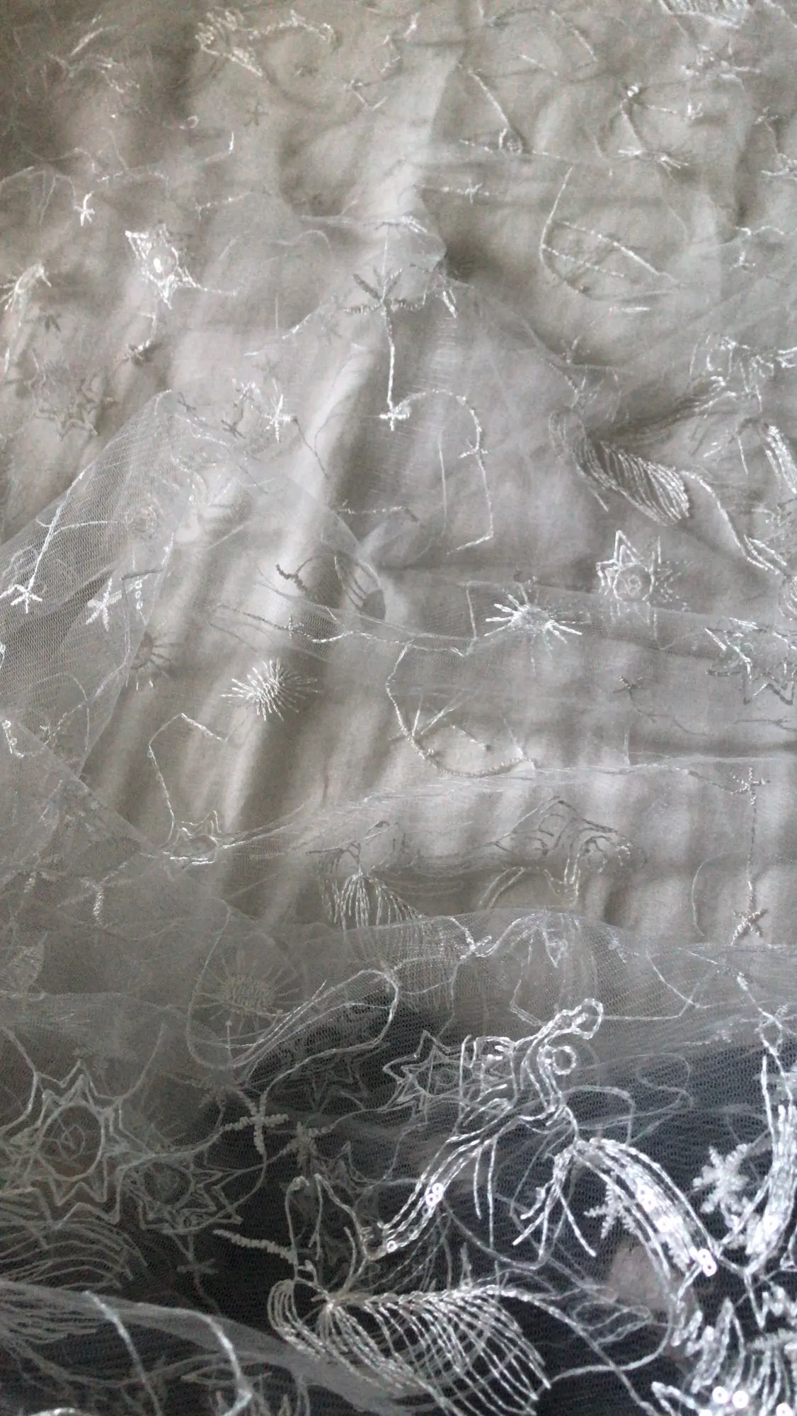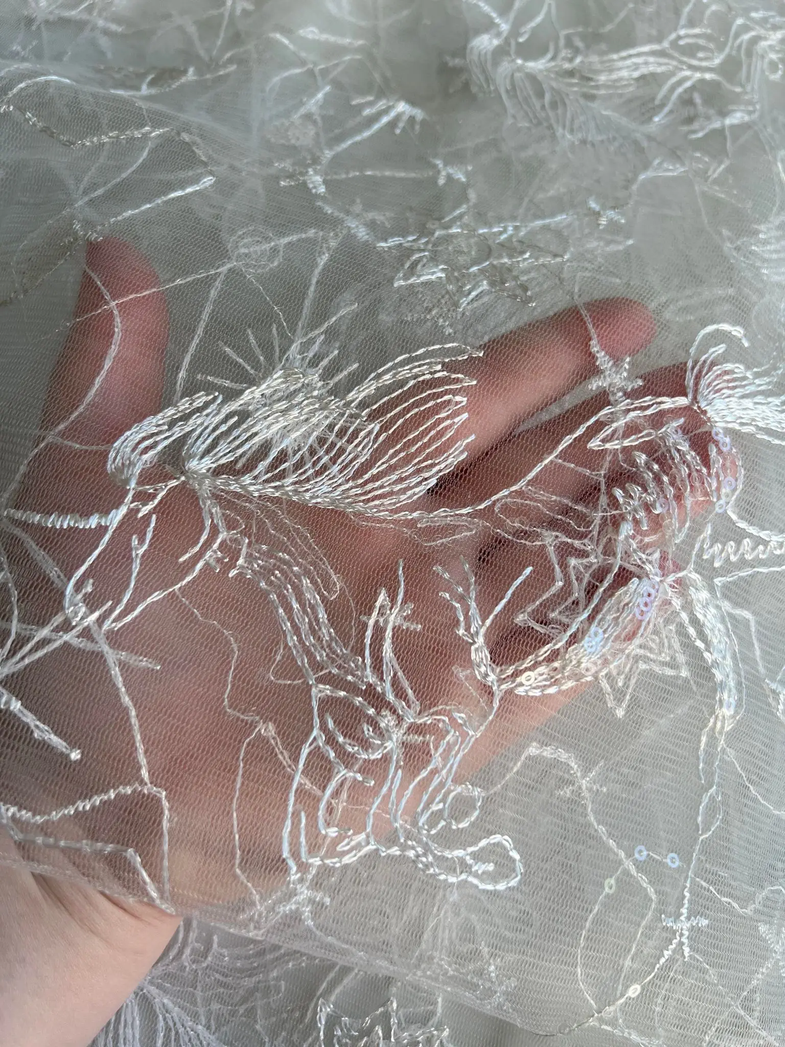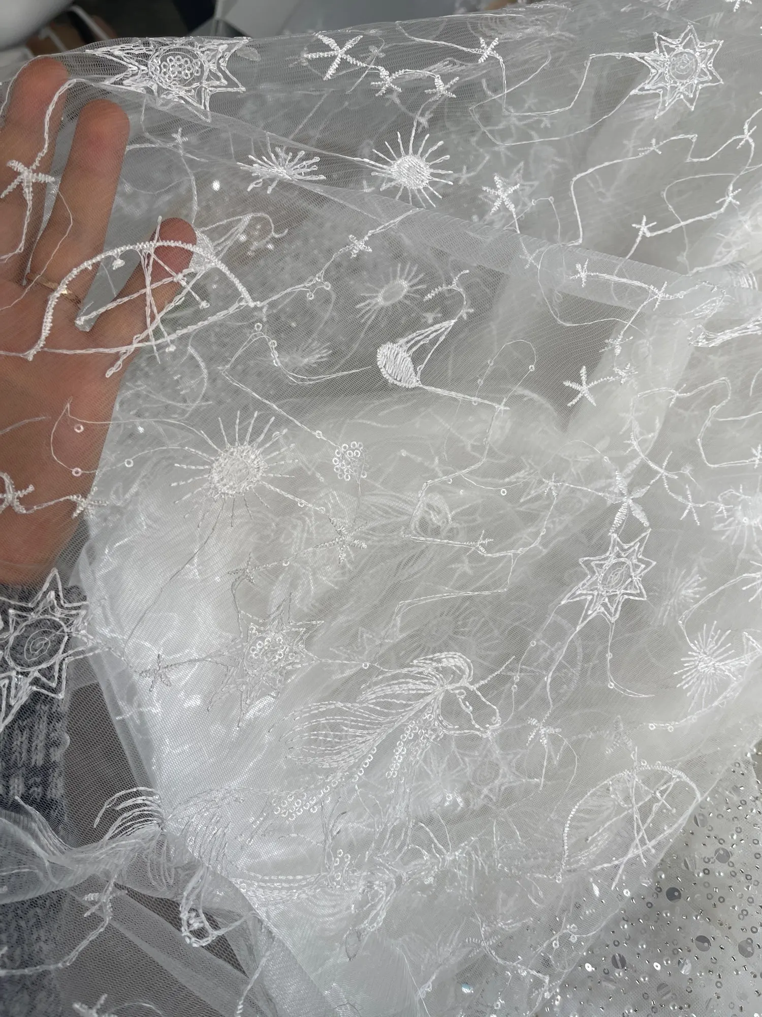 Star Celestial Embroidery Fabric, Soft Ivory White Tulle for Dress Shirt, Sequin Lace Fabric, Fashion Material by the Yard
