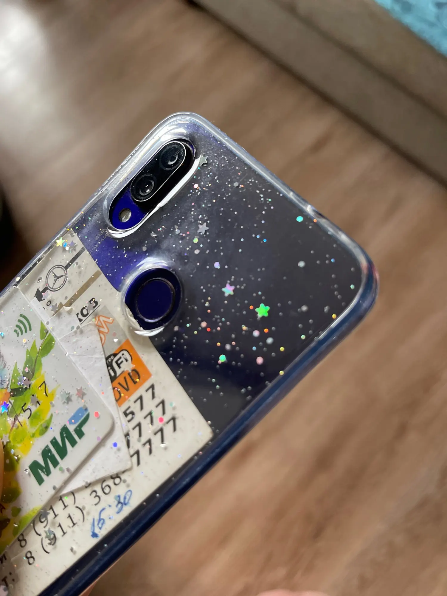 the glitter is static sadly i thought i could move, also the case it's a little thick just in case, good quality tho