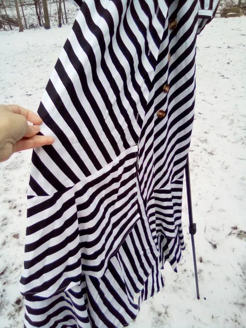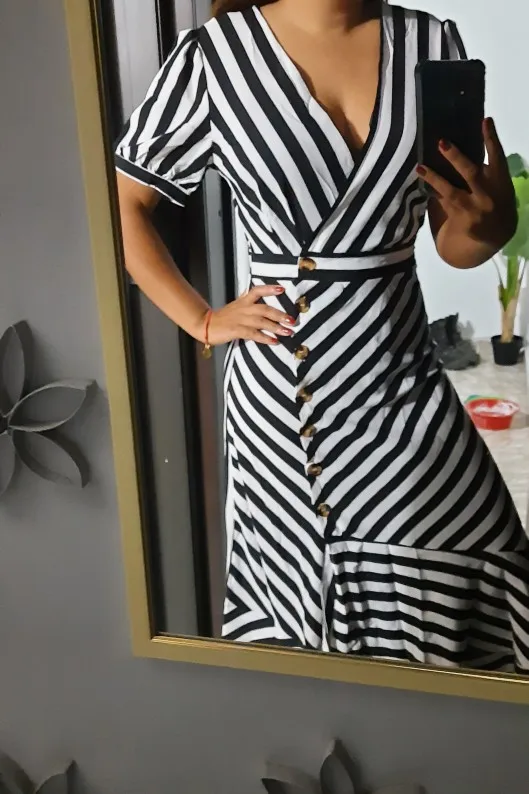 Striped Slit Irregular Ruffles Hem Dress Women Casual Dress