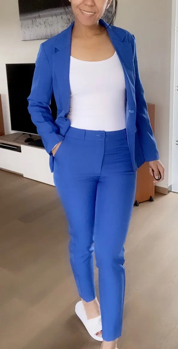 Shipping was very fast! In one week received from order to home. Color is fantastic. I love it. However the pants are a bit tight:( and low waist. Was better of the past were high waisted. I took size XL, bust 98, waist 85, hip 105.