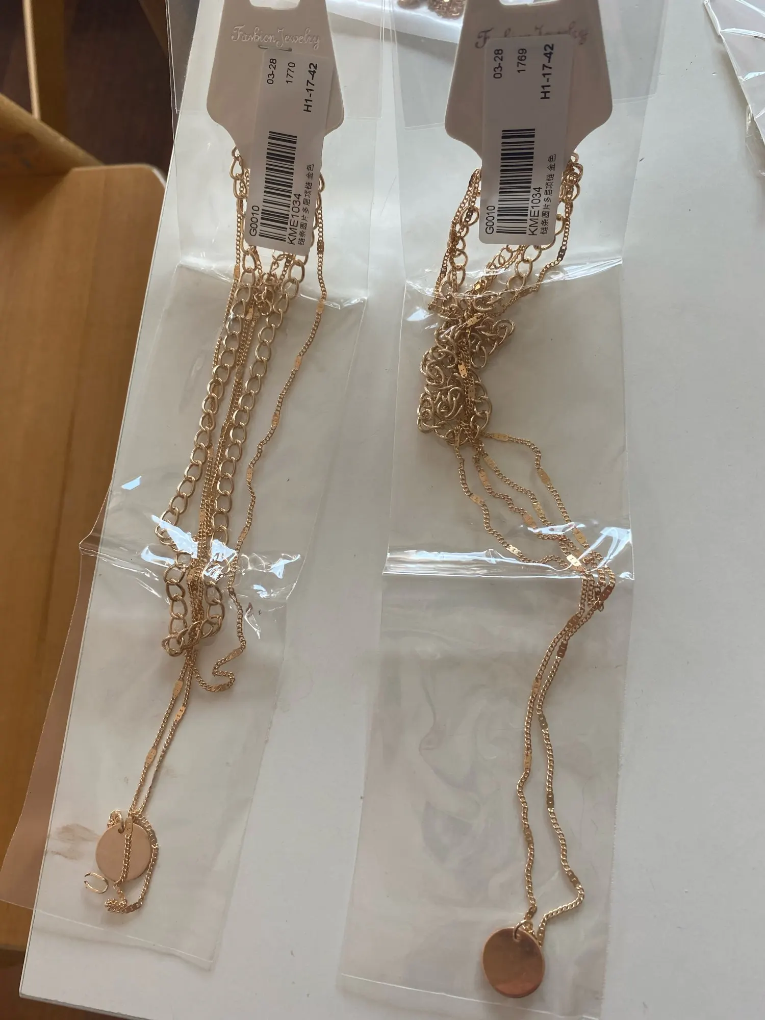 The image displayed by the seller shows three separate necklaces not joined, the largest without a clasp/hook just a round chain, then the other two has 2 seperate clasps/hooks but mine came as 3 joined necklaces with just one clasp/hook for all 3.