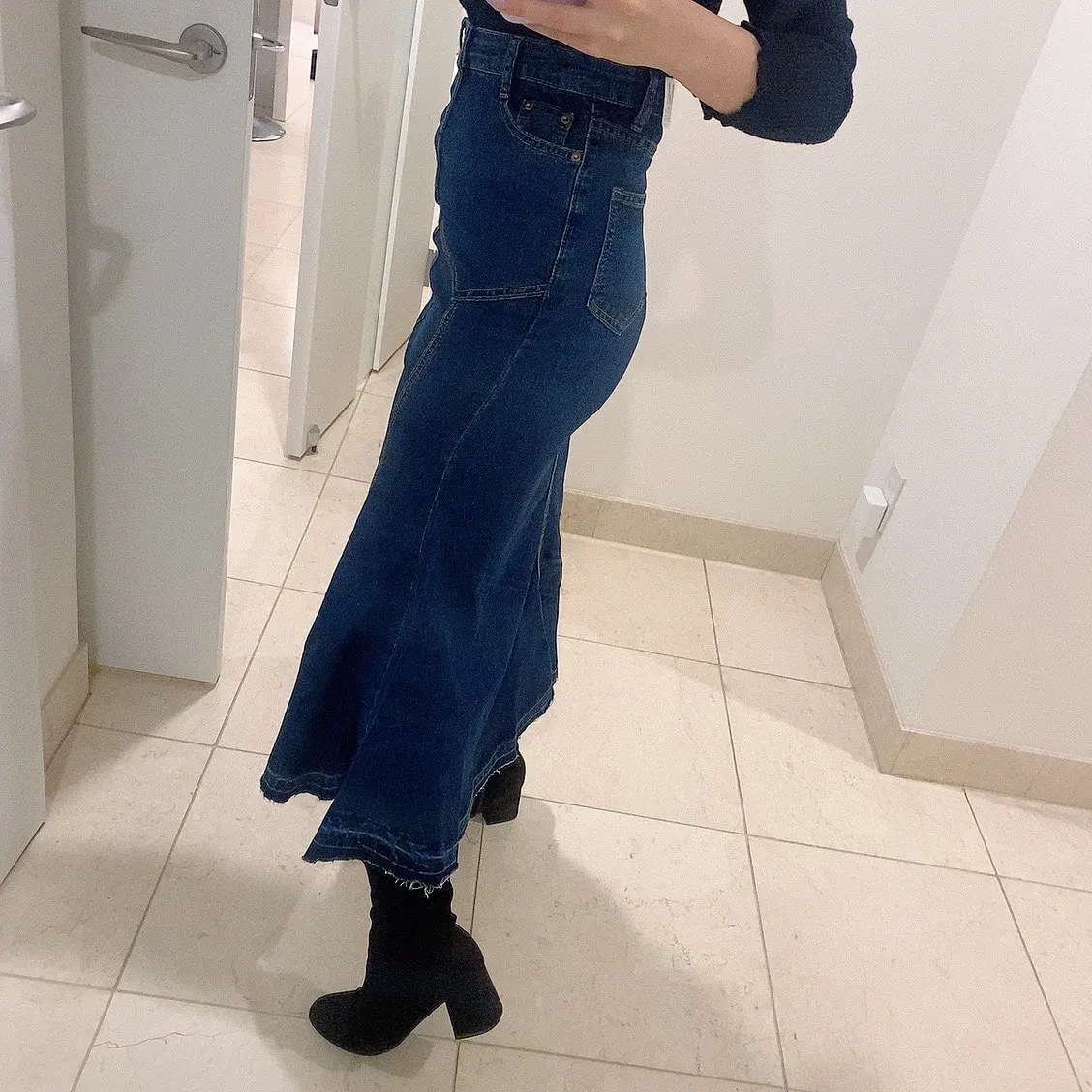 Summer 2022 Denim Skirt Women Mermaid Trumpet Long Skirt Ruffles Mid-calf Empire High Waist Jeans With Stretchy юбка B02910B