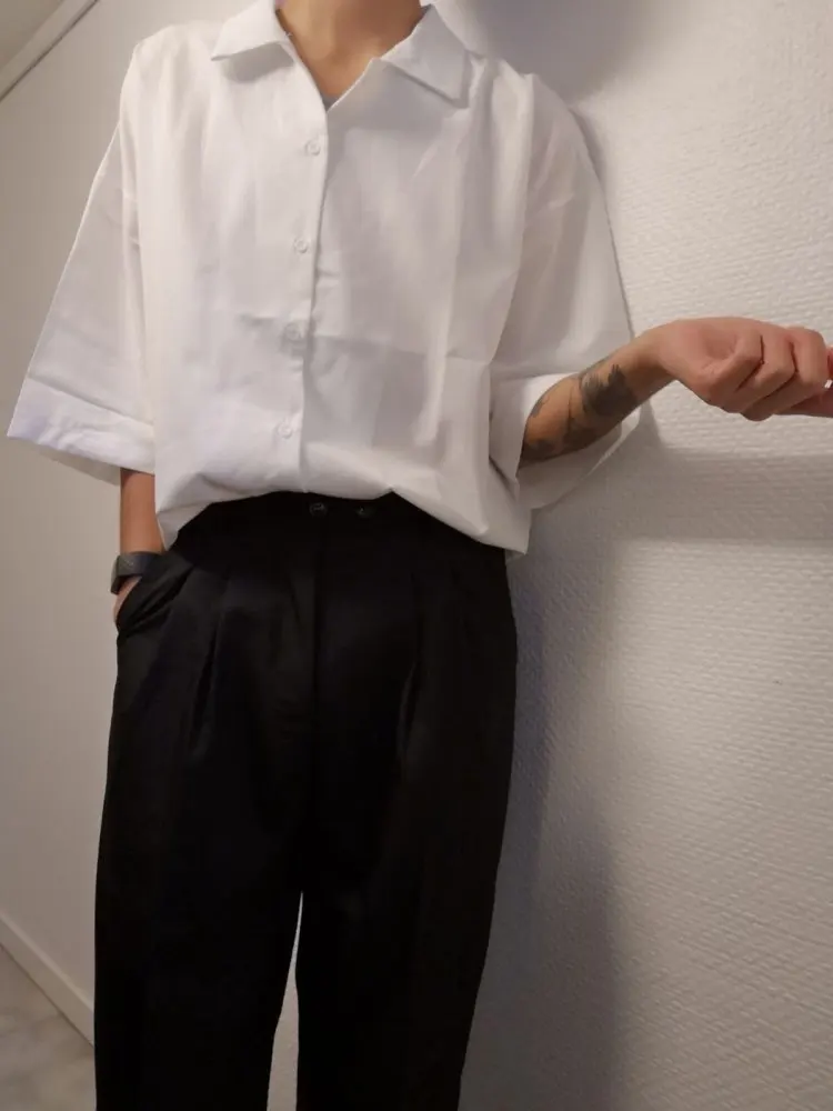 I got this in a size L and I’m about 175cm tall, 50kg. In western sizing I’d usually wear a medium for the same fit. I love the cut of this shirt buuuuut you kind of get what you pay for quality wise. It is even thinner and flimsier than it seems in the picture and mine arrived with a lot of loose threads. I also had to try to stitch the collar down myself cause it was quite warped. It’s also extremely see through. I don’t think I’d buy this shirt again, but now that I have it I’ll find some use for it, even if it’ll only be as a pattern to sew my own version of it in a better fabric.