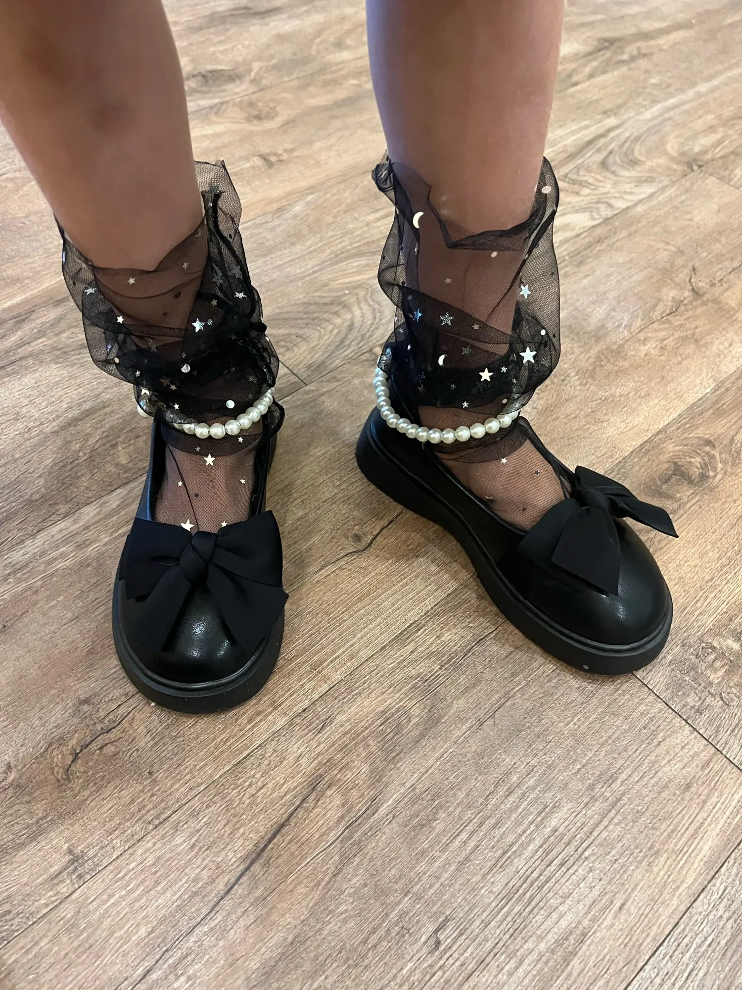 Verrrry cute! The added stars are very shiny. Sock itself is strechable, so it's not hard to put it on and it feels quite comfortable. Love it.