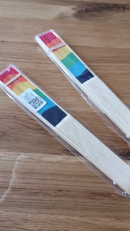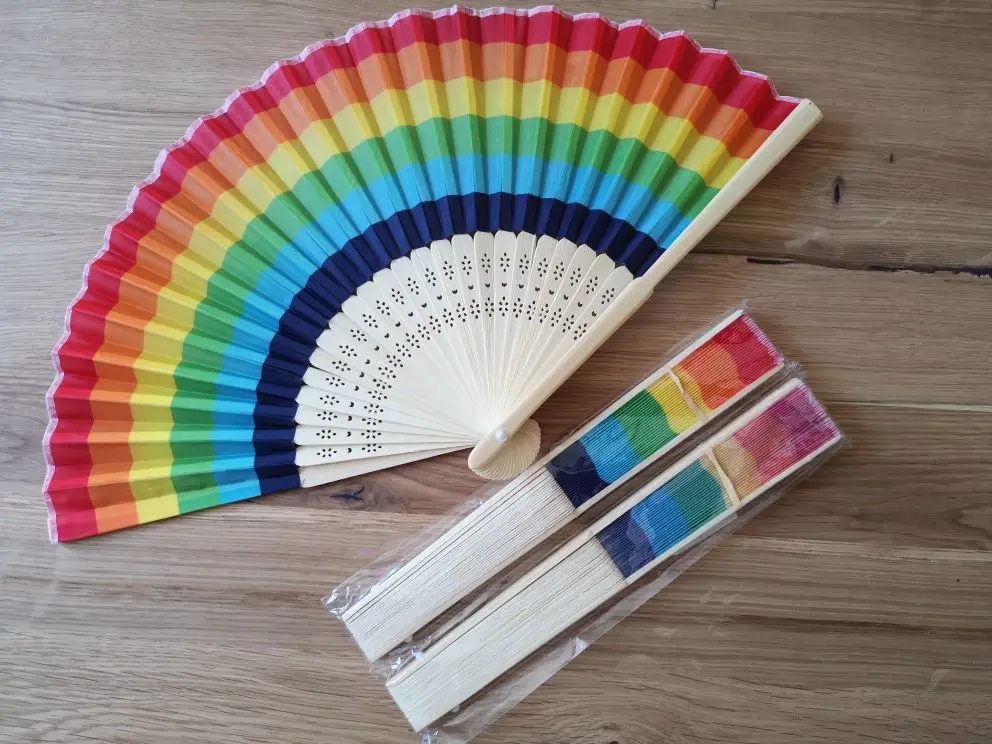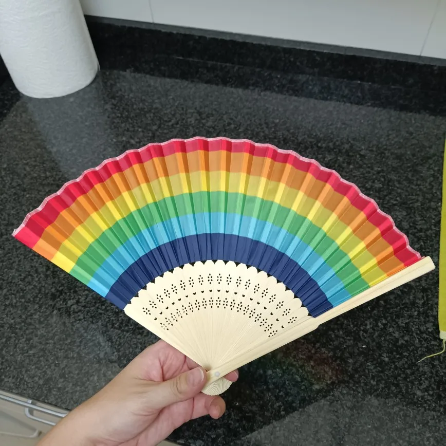 Summer Rainbow Handheld Folding Fan for Wedding Party Decoration Festival Dance M68E