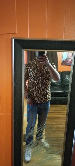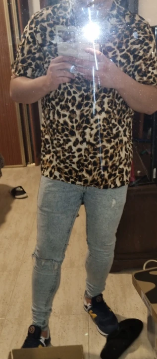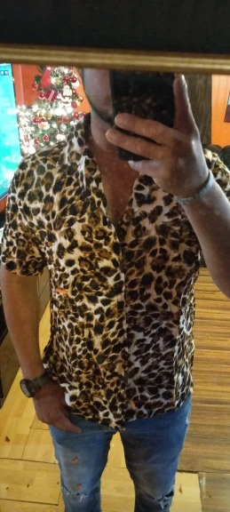 Leopard Print Short Sleeve Men Shirt