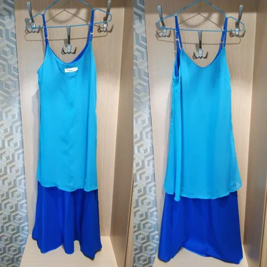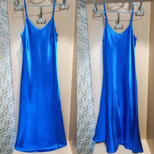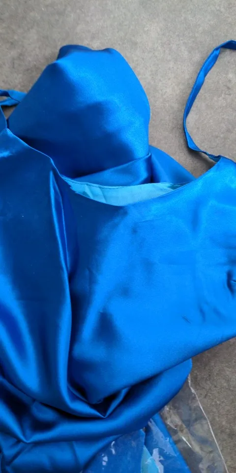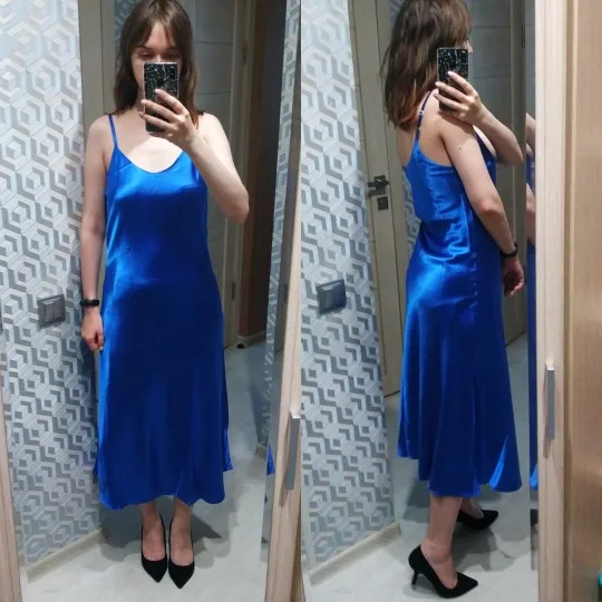 Facts: + Upper fabric is a high shine satin, it's flowing and enhancing the feminine curves. + Nice design. + Good length, including the lining which doesn't end at a ridiculous height like in other dresses on Aliexpress. - The color looks nothing like the pictures, it's closer to some baby-lilac. - The lining seems to live its own life: it's showing through the upper material, creating extra curves where not supposed to, sticking out at the chest level too. - There are some unprocessed seams where the lining is connected to the main material. Considering there are some cuts made quite close to the seams and not secured anyhow, I'm afraid it will get undone soon.