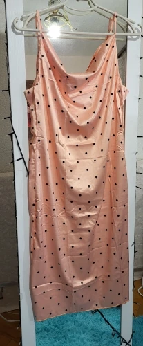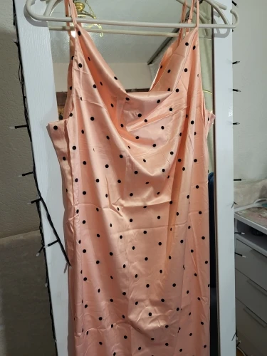 Summer Women Silk Satin Mid-Calf Dresses with Polka Dots Ladies Sleeveless Adjustable Straps Bodycon Dresses Causal Dress