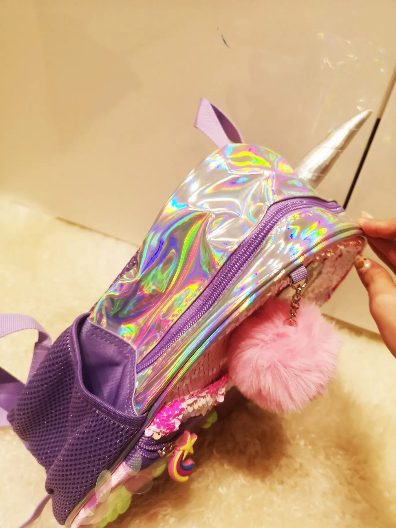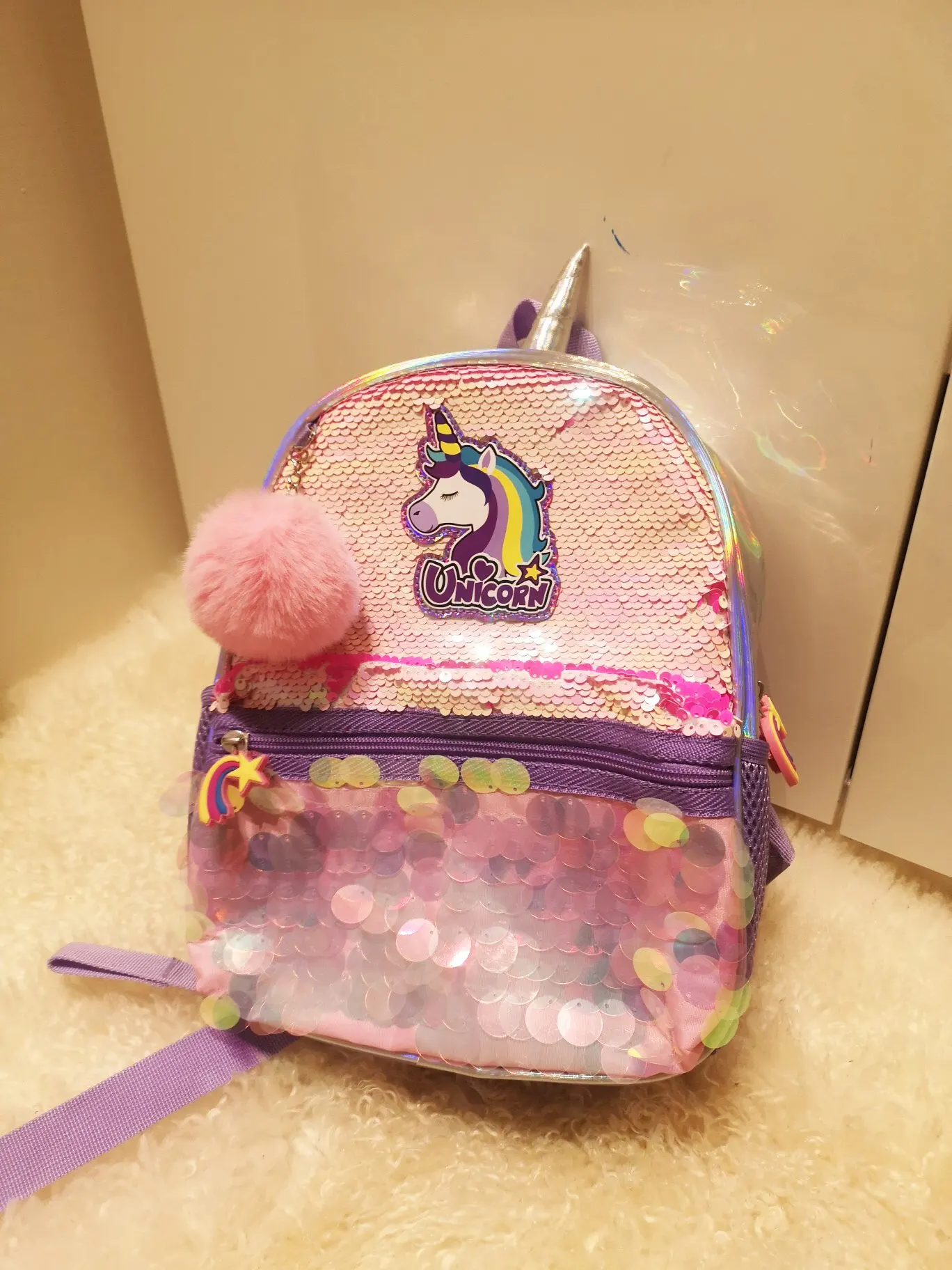 Really beautiful backpack, exactly like on the seller's photos, correspond to the description. My daughter is delighted. Recommend