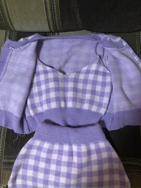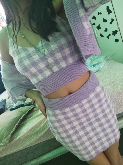 the set is very cute and personally my favourite part is the cardigan, it just ties everything together and finishes the outfit off. the skirt however isnt cut very accurate and has bumps/baggy areas on the hips/thighs. the top is okay, a little baggy and thin but gets mostly covered up by the cardigan.