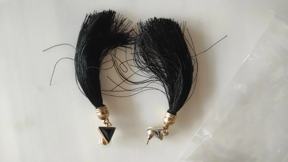 TAFREE Fashion Bohemian Women Earrings geometric triangle Red White Blue Black long tassel stud Earring Jewelry For Girls E6740