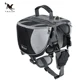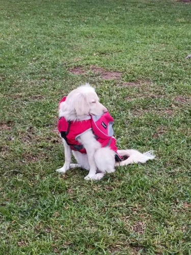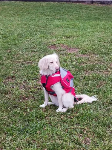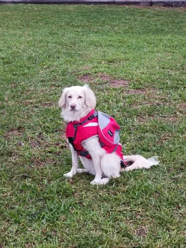 I'm very impressed! The stitching seems good, it's padded on the underside and very adjustable. I like that it's made as saddlebags and not just a harness with bags attached. My dog is 50 lbs and stocky, and she's got a little wiggle room, we'll see about the D ring and if she needs to wear her harness underneath. Now she can carry her own water and accessories when we go exploring!