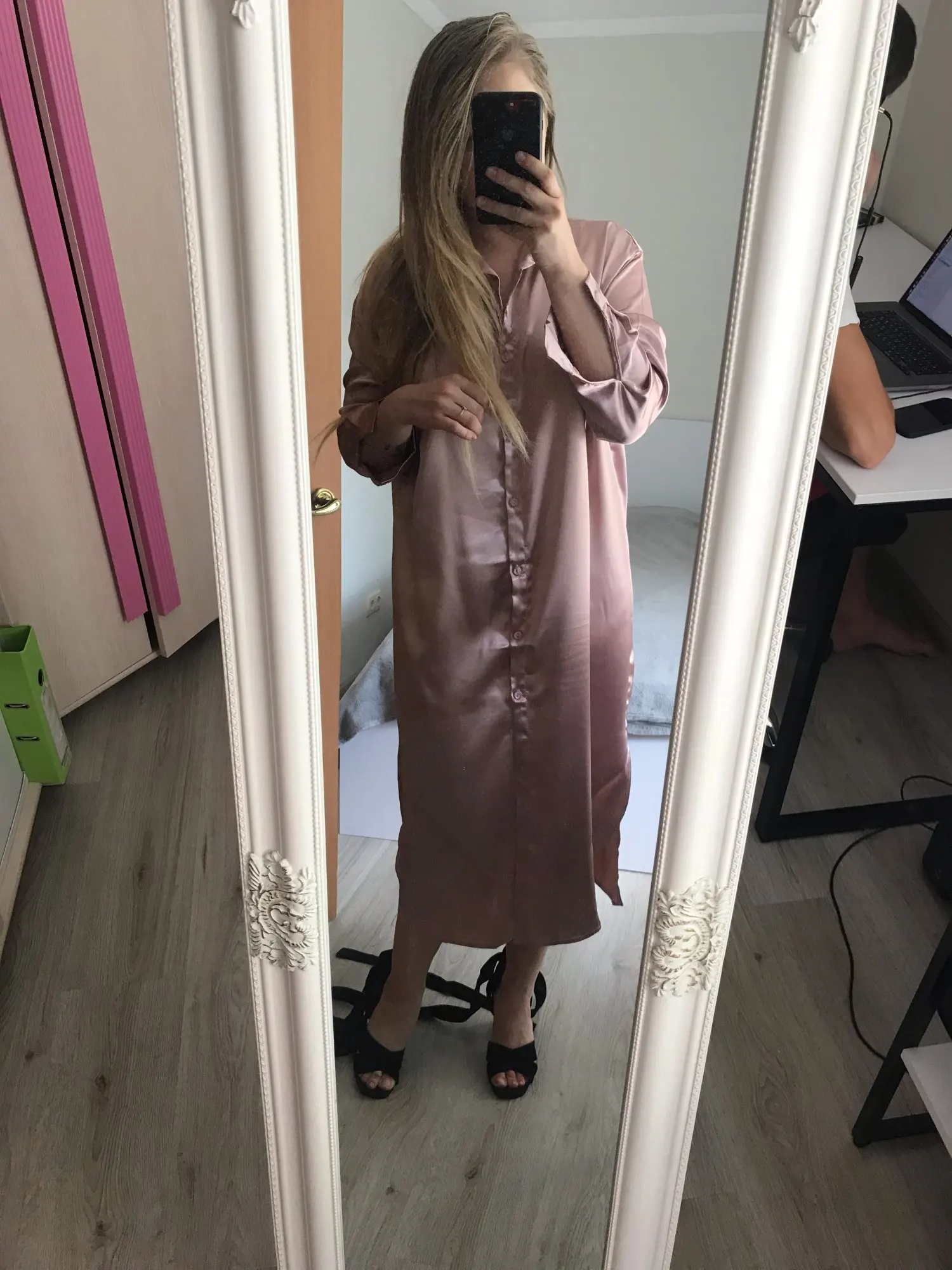 Tangada 2022 Fashion Women Solid Satin Shirt Dress New Arrival Long Sleeve Ladies Midi Dress Vestidos 1D75