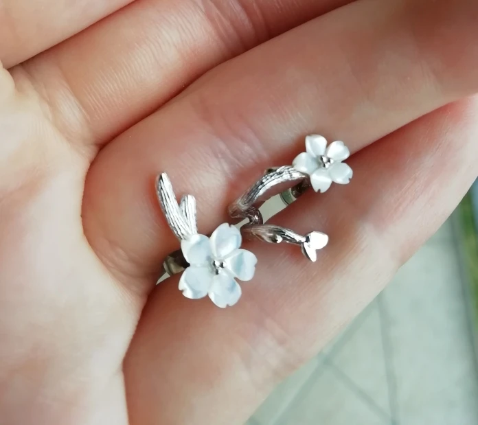 Thaya White Cherry s925 Silver Earrings Flower Round Cuff Earrings For Women Elegant Fine Jewelry