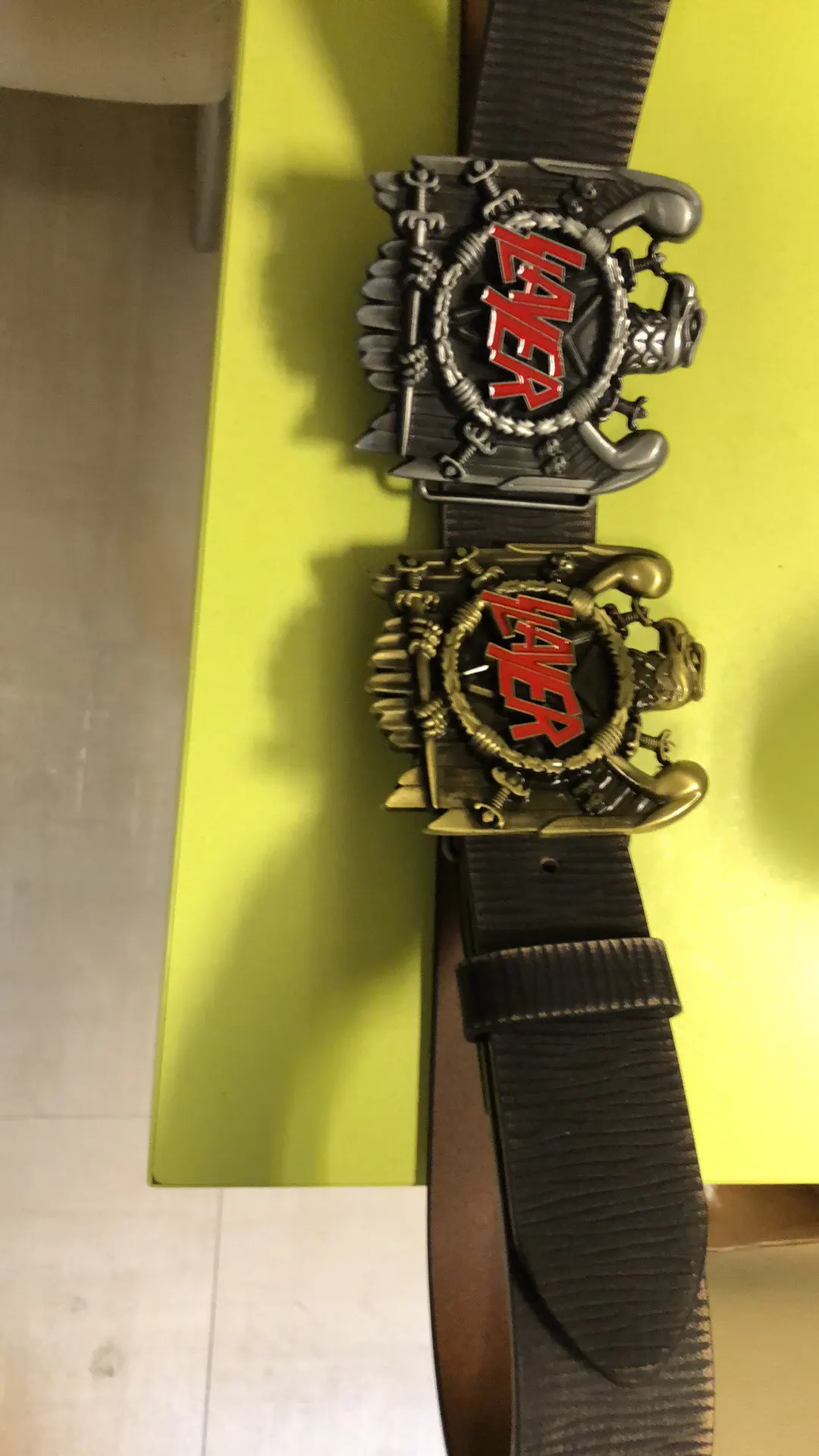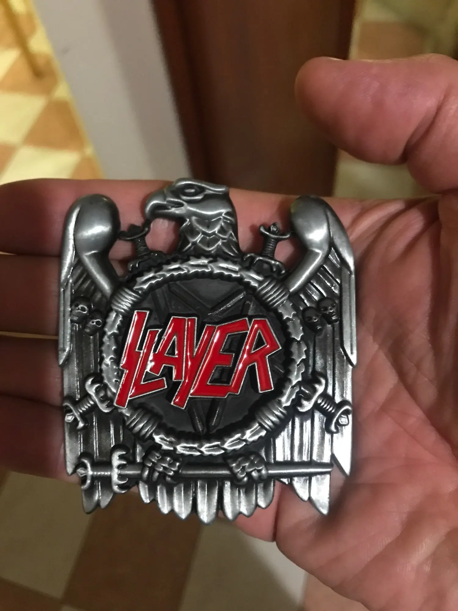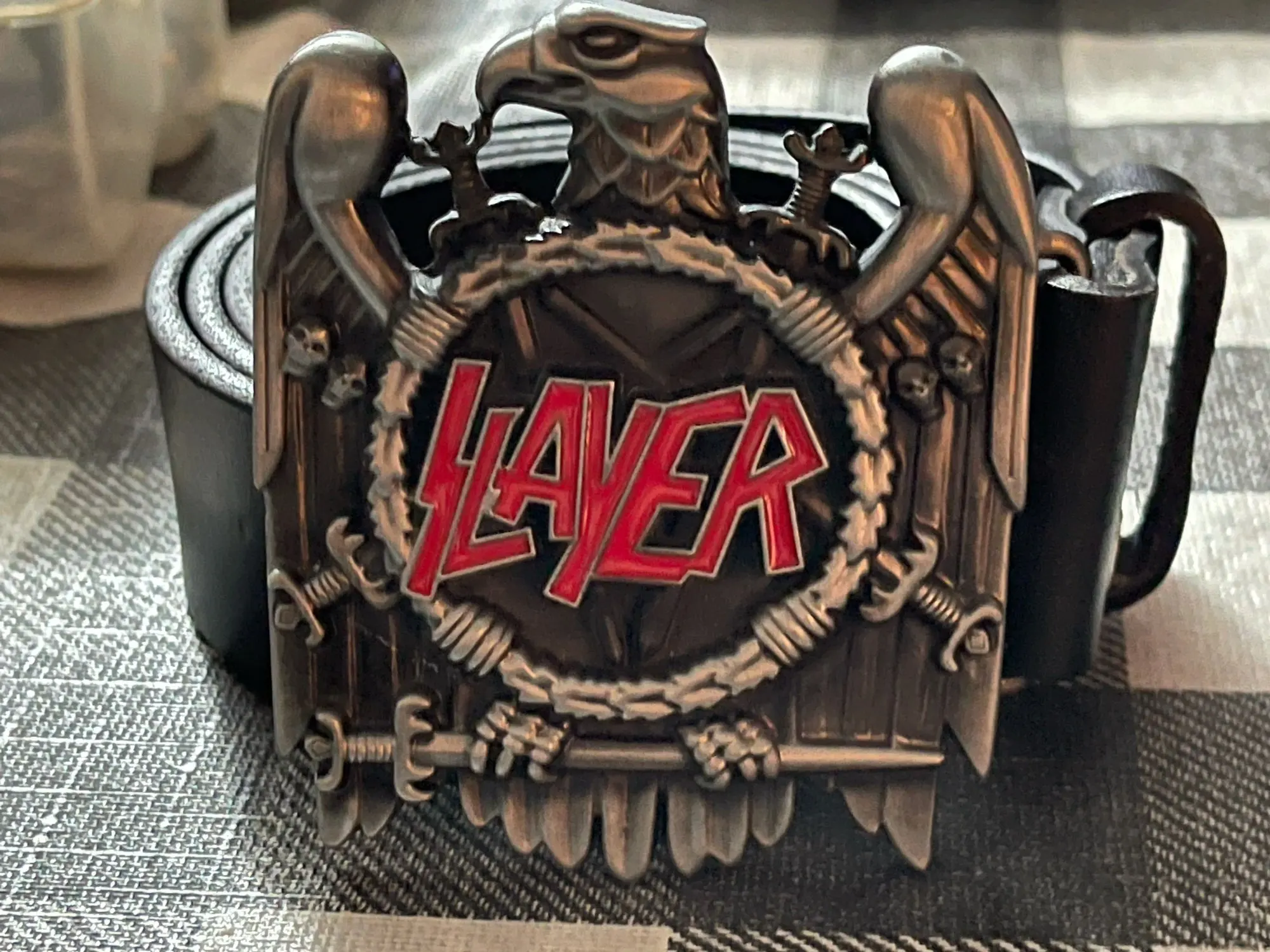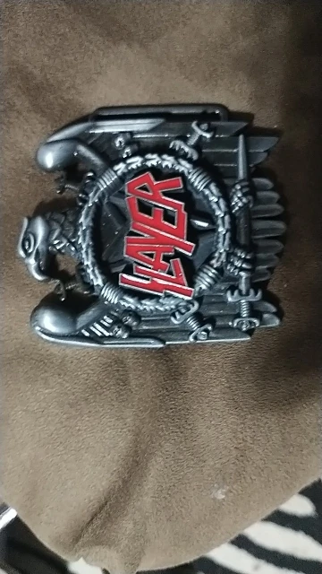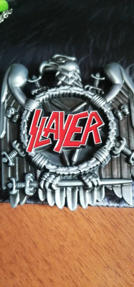 The Bullzine Slayer belt buckle with pewter finish FP-02905-1 suitable for 4cm width snap on belt