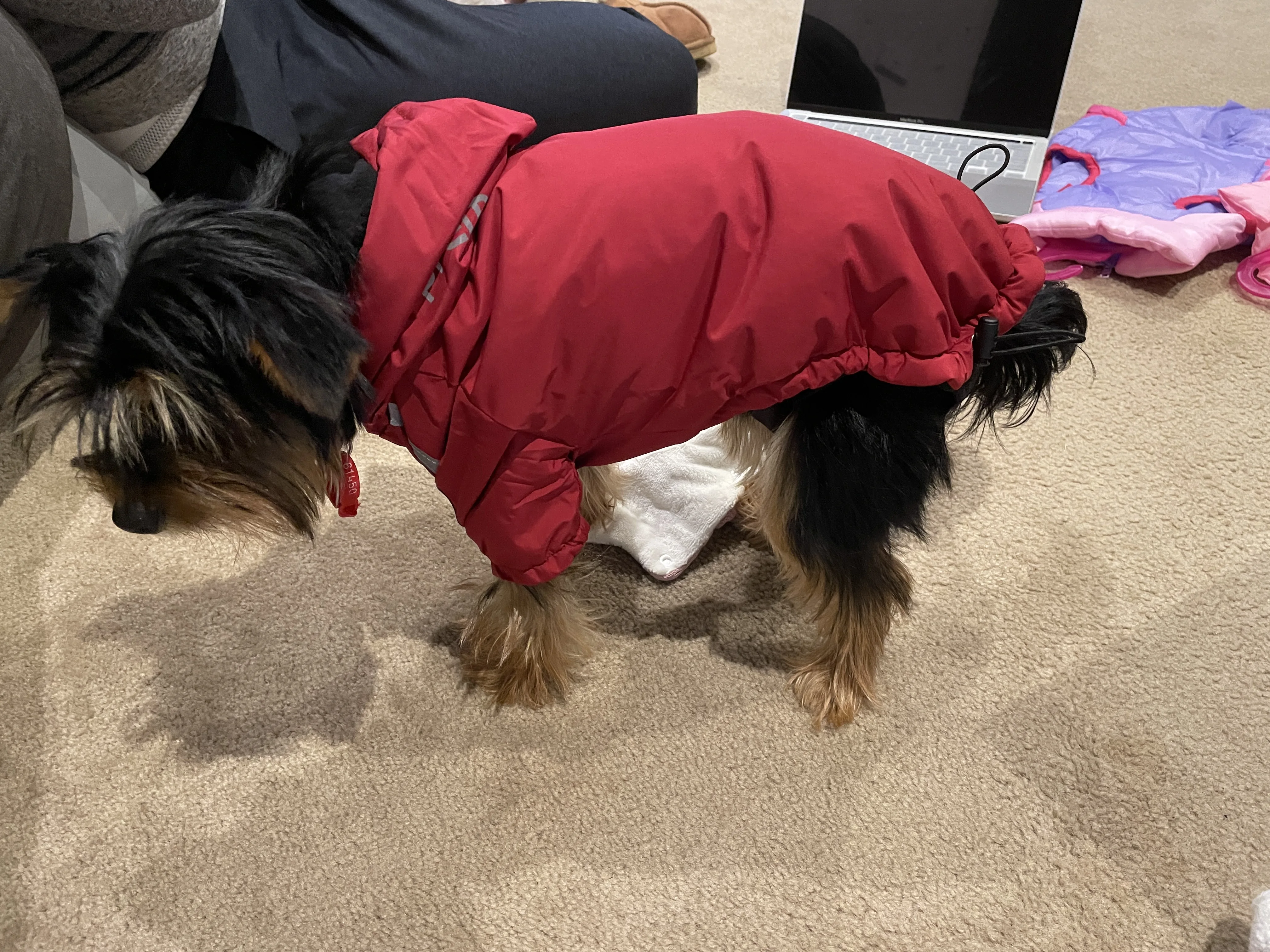 Size L fits well for small size dachshund, could run freely in the snow with it
