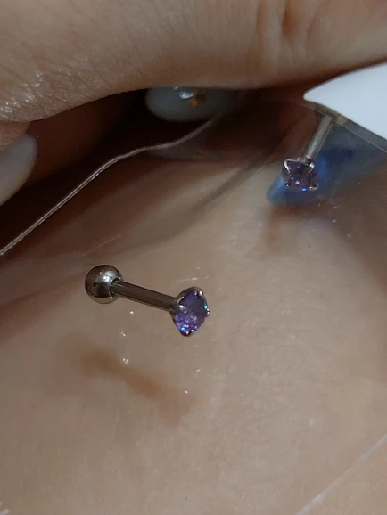 The Screw-back Stud Earrings Purple Zircon The Needl is 1.2*6mm 316L Stainless Steel No Allergy Never Fade