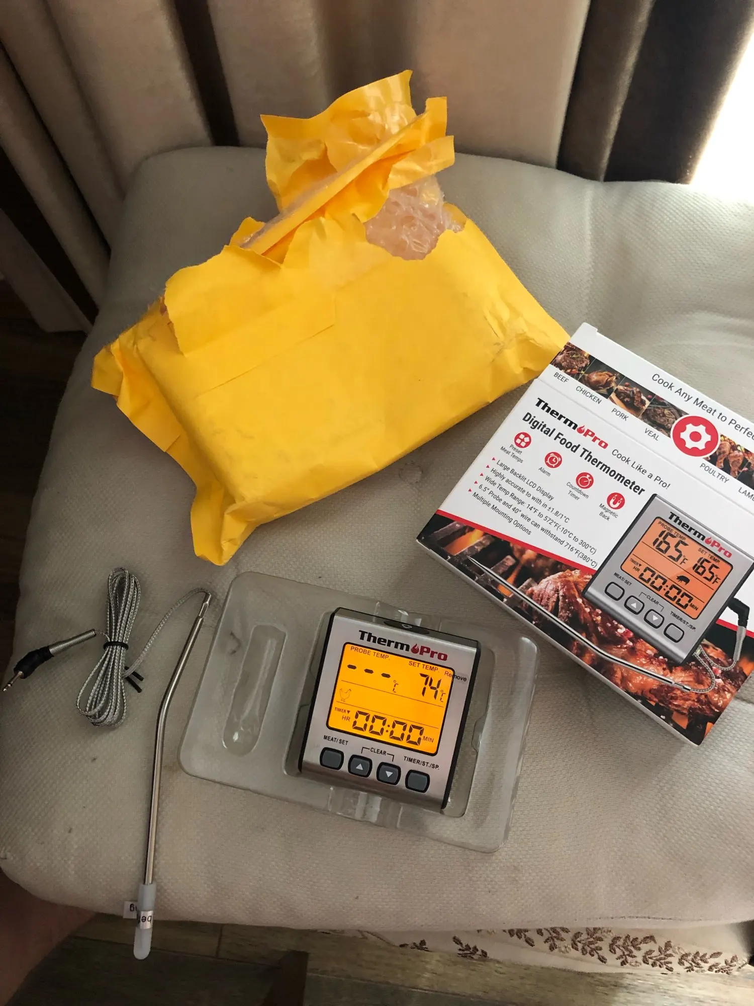 this thermometer works, however the probe will get hot if left in the oven. Bought this thinking i can leave the probe inside the roast, however, i notice that the temperature was rising too fast. Using it as a quick reader also work however it is very clunky.