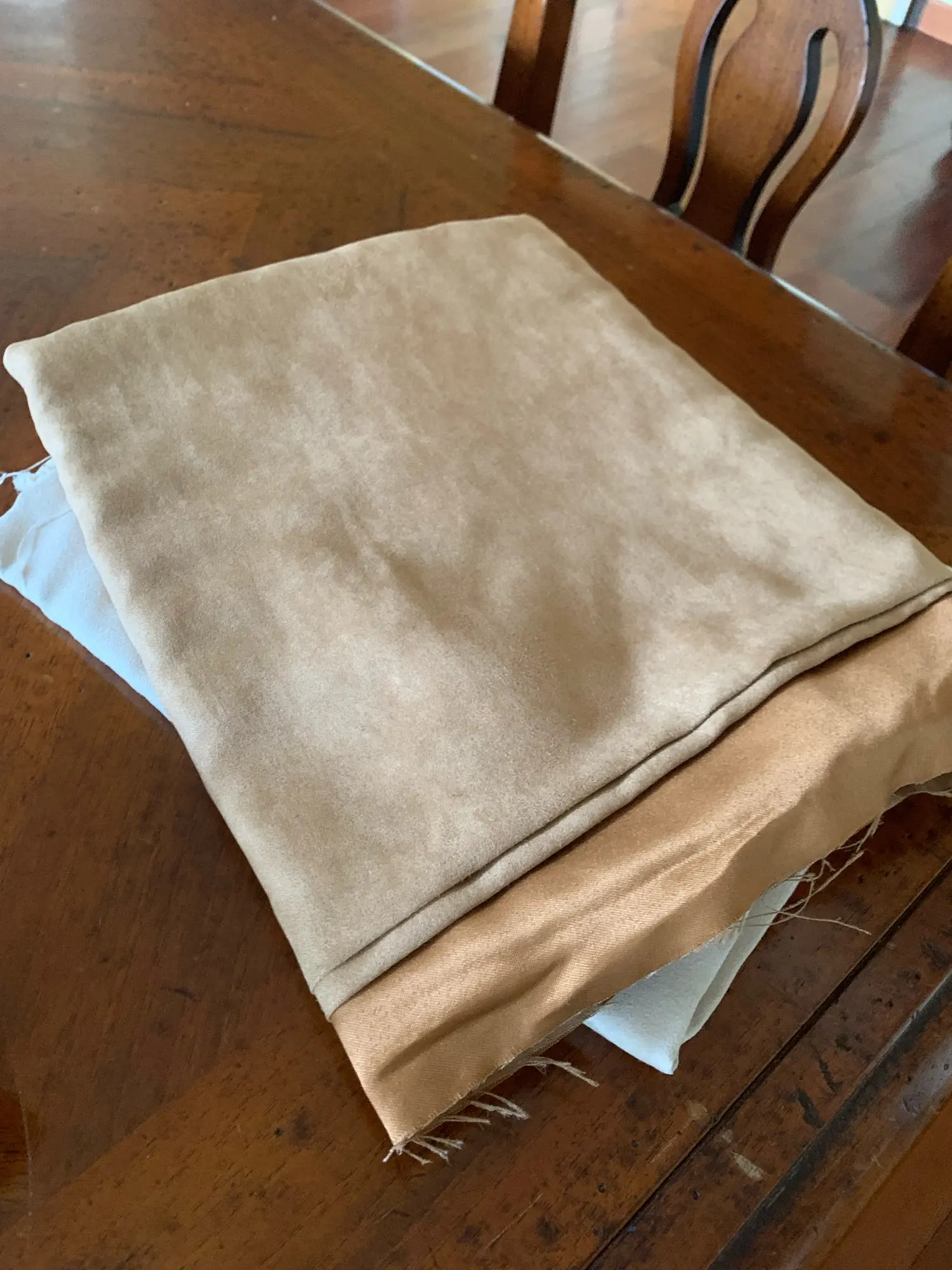 this is not suede and I can't use this sadly. the fabric doens't match the picture. it's like a shiny silk fabric