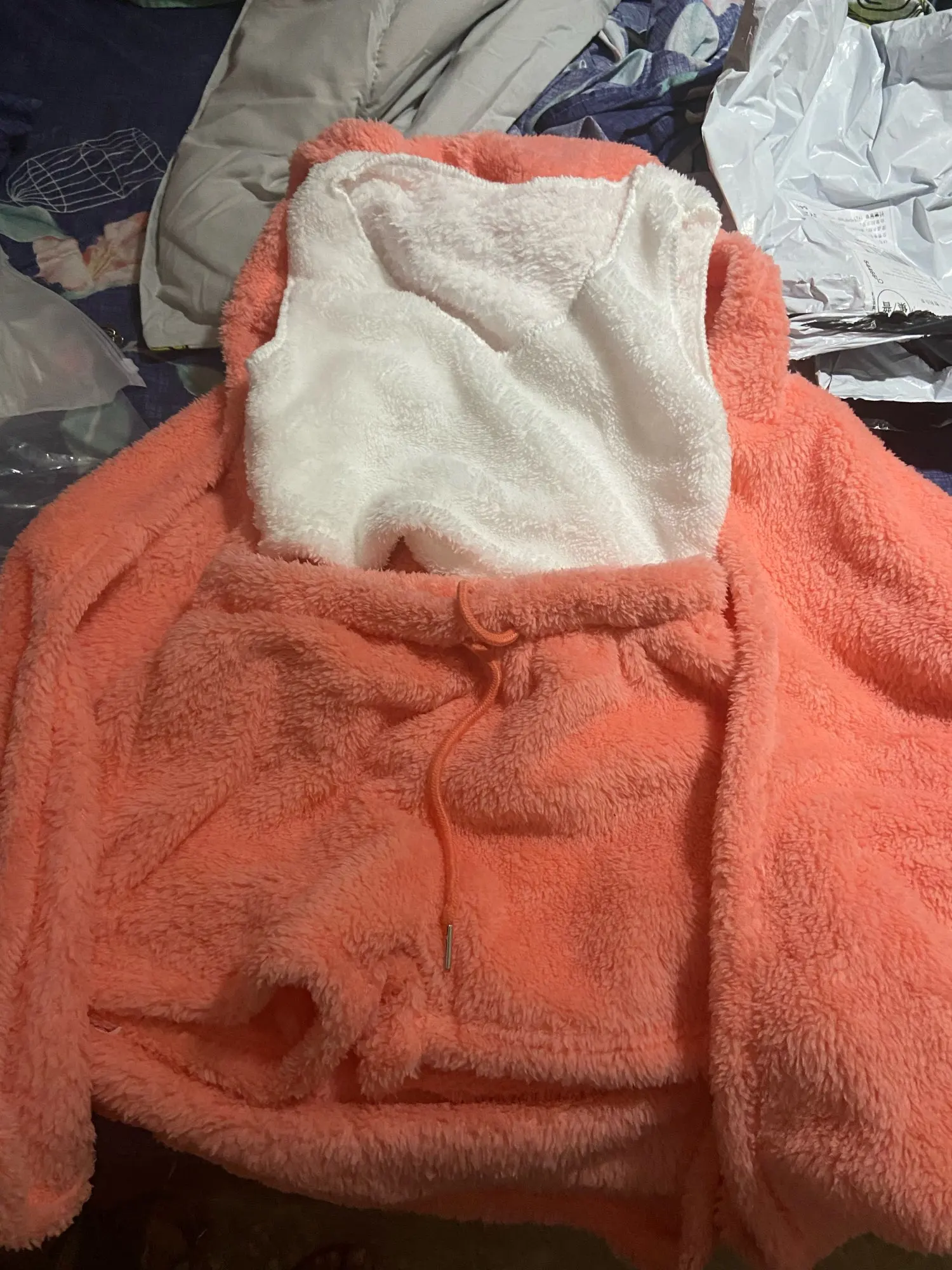 Velvet Plush Hooded Cardigan Coat+Shorts+Crop Top