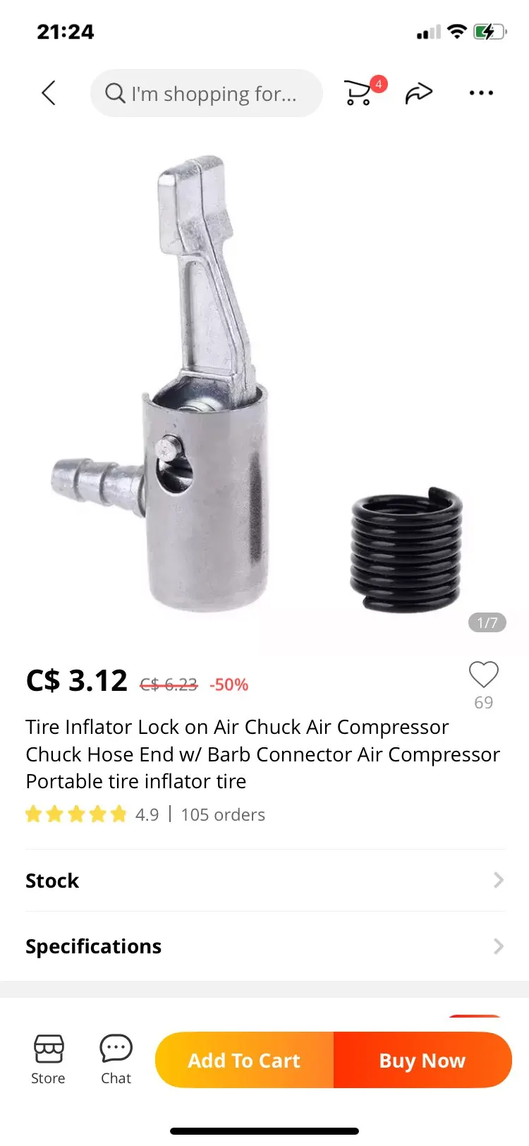 Tire Inflator Lock on Air Chuck Air Compressor Chuck Hose End w/ Barb Connector Air Compressor Portable tire inflator tire