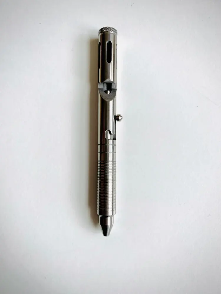 I owned a real Boker titanium bolt action pen, and I will say, this is identical. I loved my Boker, and the company was awesome when I needed a new part, but I can buy 3 of this for the cost of that one. Bet you can't guess why I bought this? Surprise, pens disappear, and Boker doesn't replace because it is lost. This pen has the same "scratchy" mechanism that my original had, and it took a few thousand clicks to get it smooth. You will do that pretty quick if you sit there and click it like me. the only things I noticed any difference on are the lack of laser engraving saying "Boker," and the milled slot on the clip is a little bit more sloppy on the 2 ends. It is clear that the mill that made this slot needs to be tightened up so the bit does not shift when cutting. You can see this in my picture. I absolutely recommend this, and I also recommend the original Boker if you have the money. I already supported them originally, so I have no problem buying this one without engravings ;)