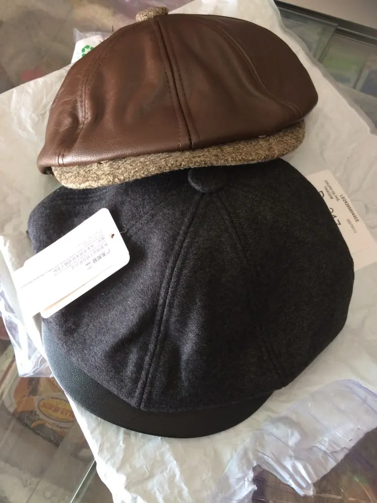 TOHUIYAN Classic Leather Newsboy Cap For Men Autumn Winter Warm Octagonal Hat Snap Brim Collection Hats Gentleman Beret Caps