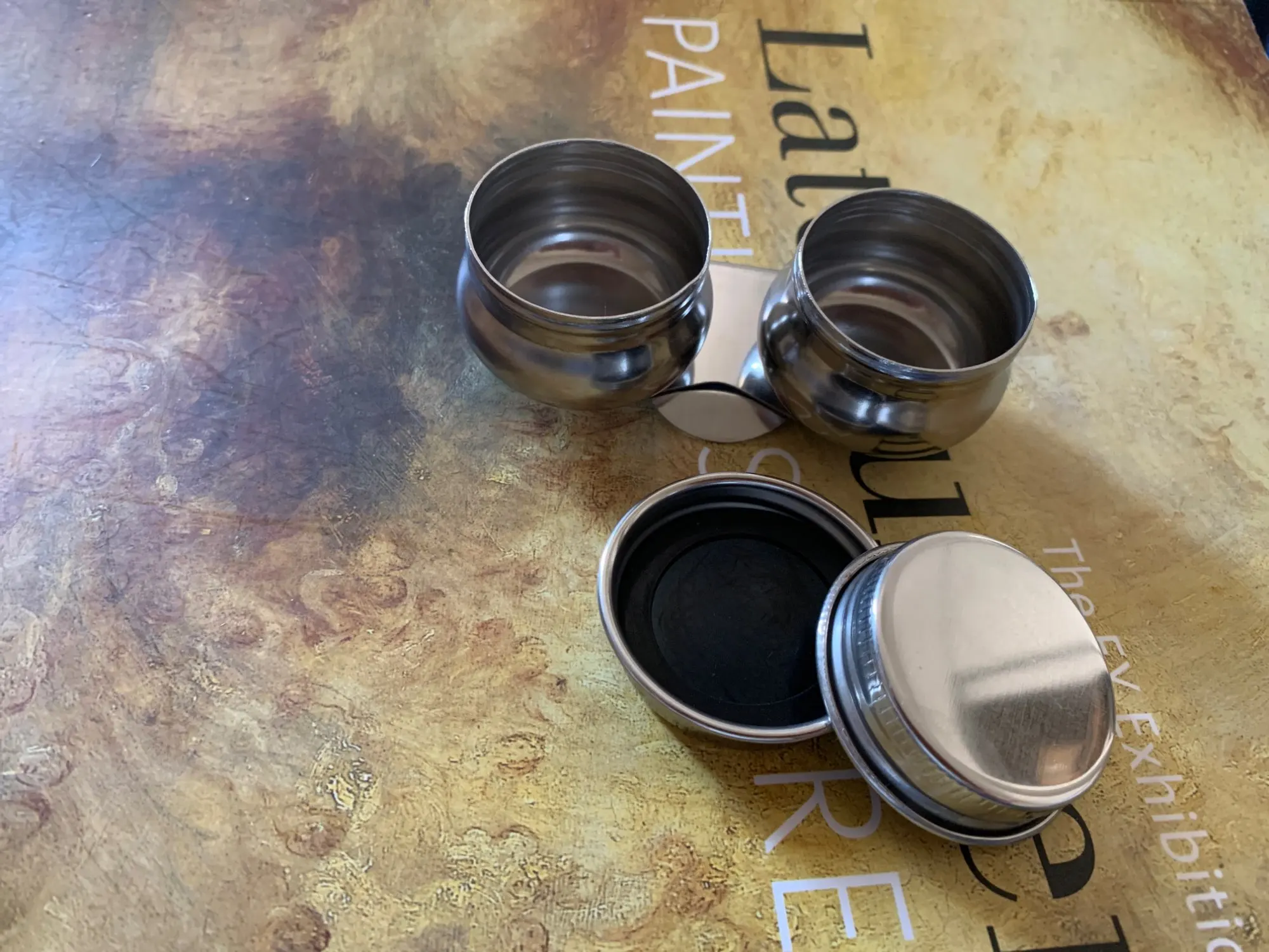 It diid not take long to arrive. But it sure is small. I very shocked at the size. Yes will work. Nice that it will clamp on my pallet. Do no have to worry about the amount spilling . Ver thingy amount.