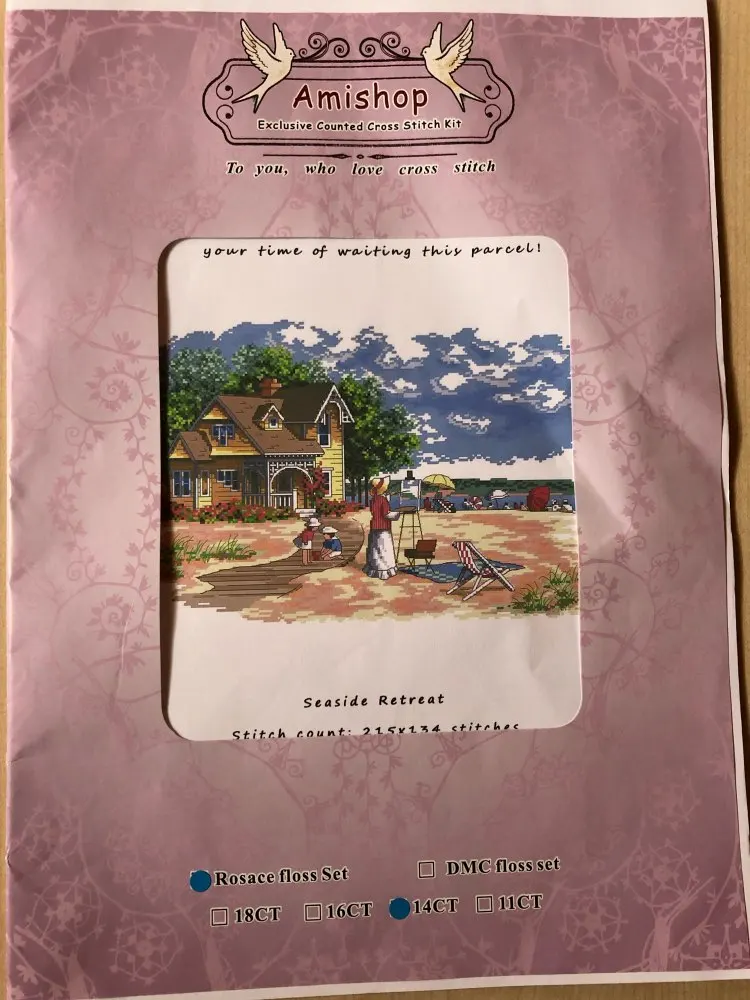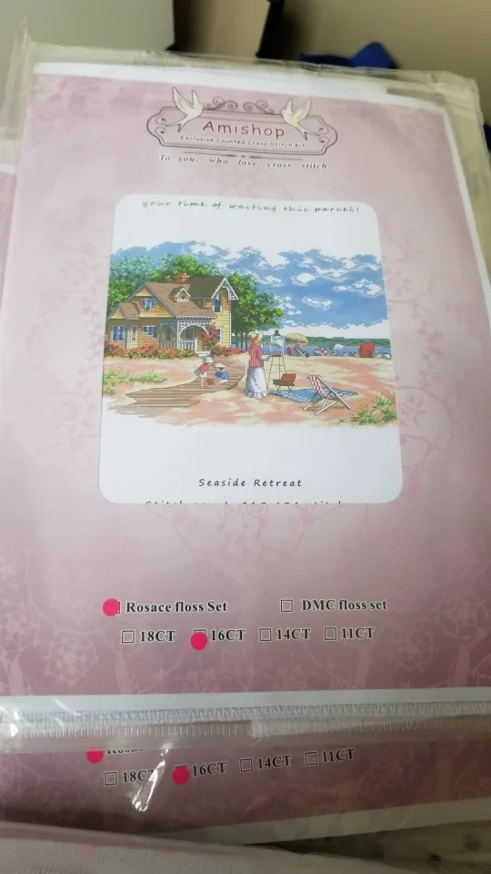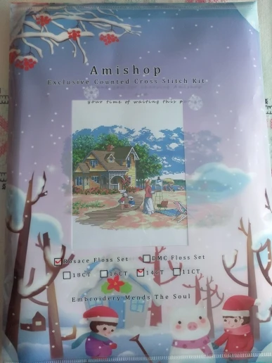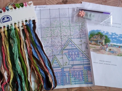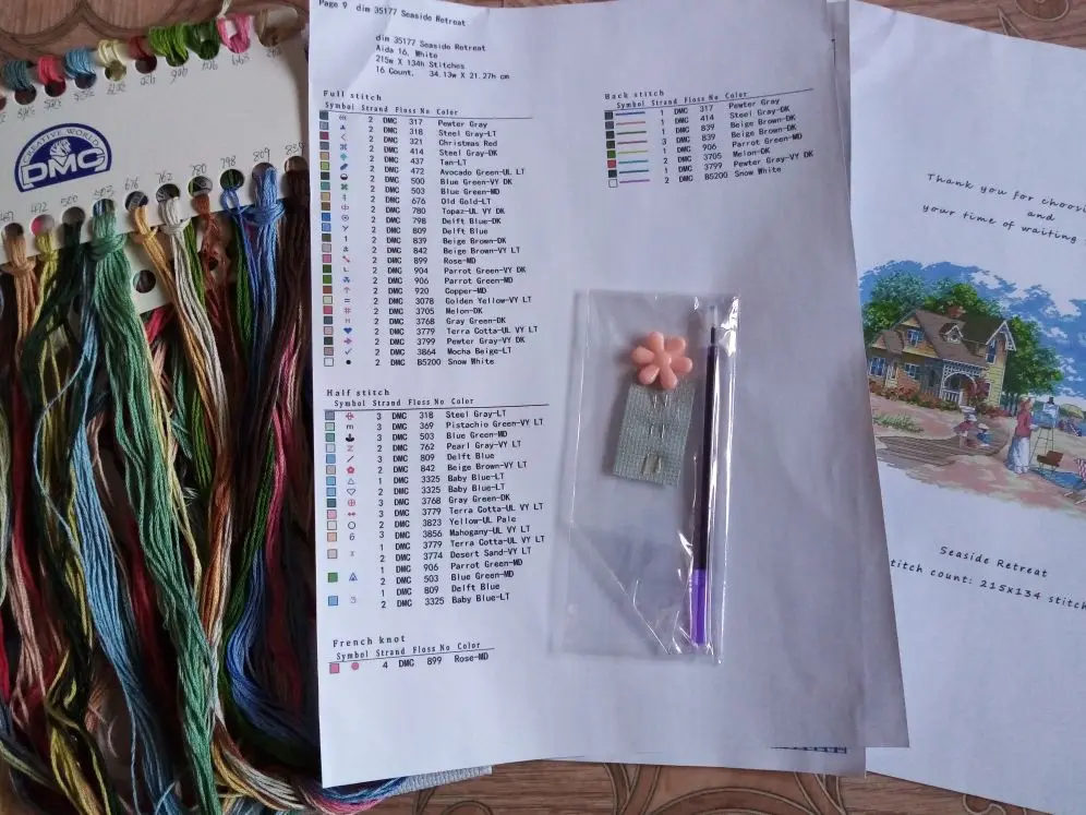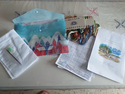 The kit was packed in two folders, contains 2 needles, long cotton thread, I would say 130 cm. The pattern is big, easy-readable