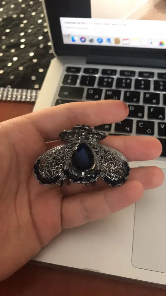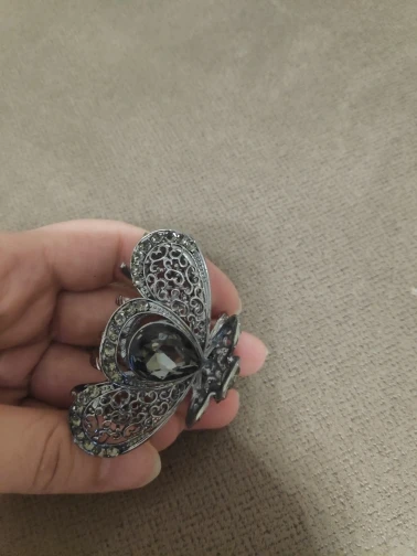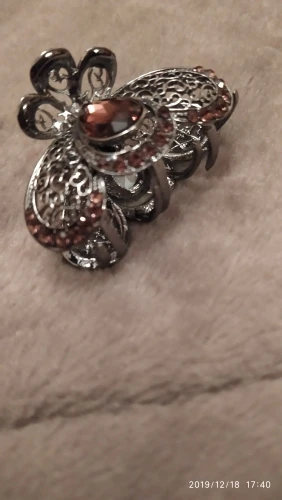 I love your Rhinestone hair clip. I was surprised that your clip was not Purple but Puce. It's sort of red, brown, purple. There are so many Puce colors in the world that it is difficult to describe. It is very attractive and sturdy. I have very fine silky hair and if I tie up my ponytail with a band I can place your clip over it and it actually stays in place. Yeah! Thanks Again :)