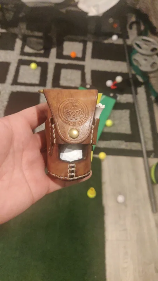 Tourbon Vintage Portable Golf Ball Bag Pouch Divot Tool Holder Tee Holder Holds 2 Balls Vegetable Leather Waist Golf Carrier