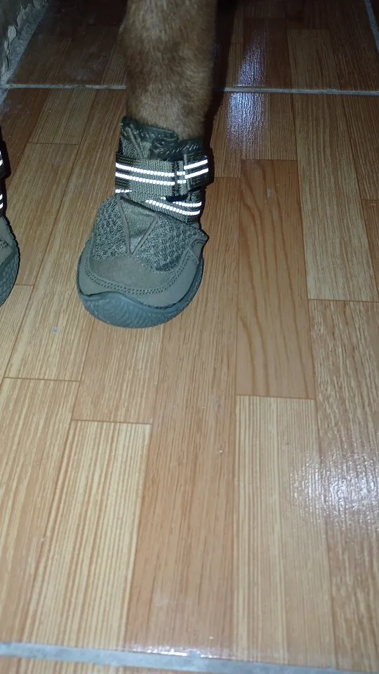 These are extremely high quality shoes. Comparable to Ruffwear's shoes. Very soft flexible soles and good cushiony wrap around the ankles. It looks really secure. I measured twice because I was worried about the returns. And I still had to order another size smaller. The pair I ordered for his smaller hind paws fit his front paws. Still worth it!