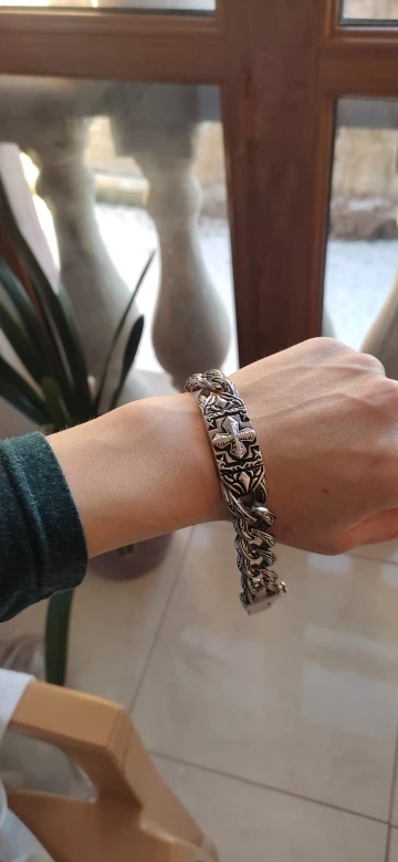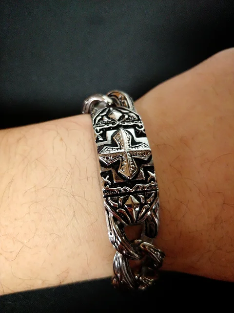 TrustyLan Retro Chain Link Bracelet Men 17MM Wide Heavy Cross Stainless Steel Men's Bracelets Cool Punk Male Jewelry Wristband