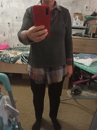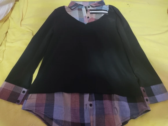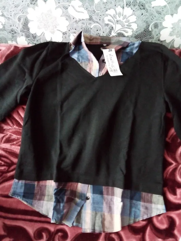 Fast shipping. Good stuff. Smooth stitching. There is no smell. "The sleeve of the blouse is shorter by 2 centimeters cham declared by the seller"