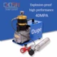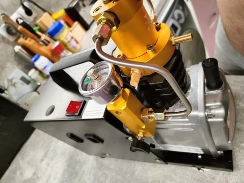 perfect and recommended. pretty fast changing of a 1.1liter 4500psi canister. the cooling system could be ameliorated with a closed circuit (radiator). I get 70° celcius at the 3/4 of the filling and the need of a bucket of water is not convenient, I may do a modification with a small car heater radiator, a circulator and liquid coolant instead of water. the motor fan should be enough to circulate the air to cool down the radiator, if I don't get enough air flow, I will print a better fan on my 3D printer. if the company that built the compressor could make a self contained system included with their compressor or optional? by the way, I'm a professional mechanical engineer. best regards.