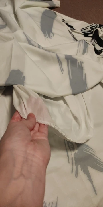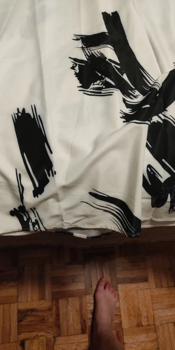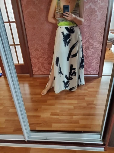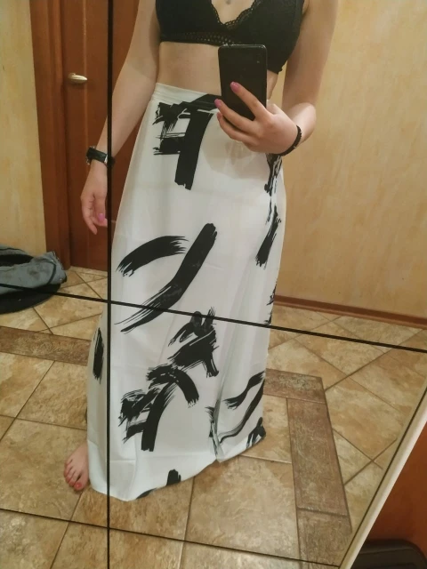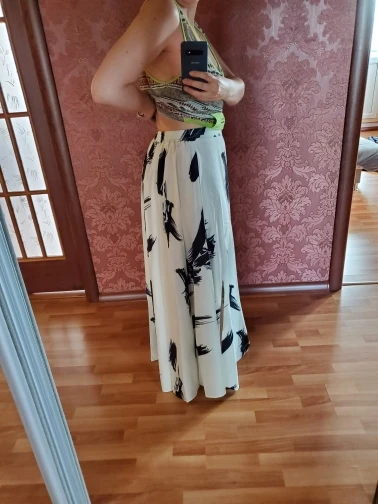 Print and design is same as picture, but fabric quality is poor. Fabric is shiny and due to the nature of the fabric, the outer area of the black brush strokes look washed out and 'stained like' at the white fabric. It comes with a white petticoat. I'd recommend getting the Kiesza Lyte model better, she does the exact same skirt with a better fabric choice.