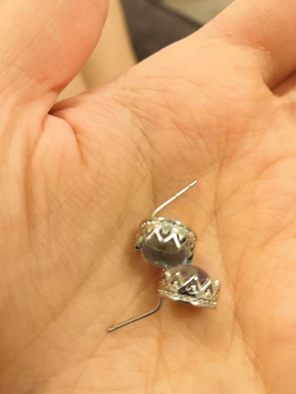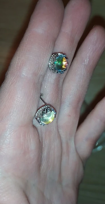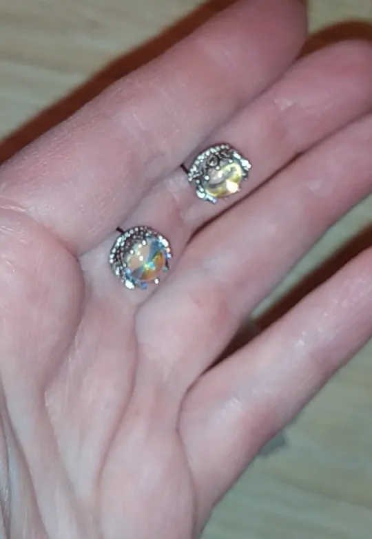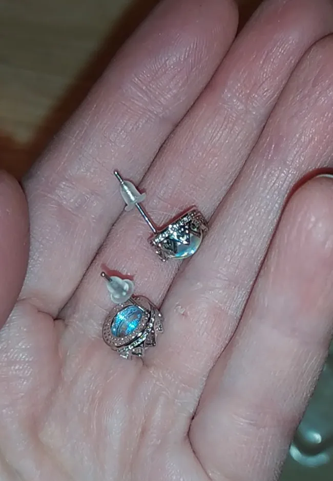 The earrings are not exactly as shown in the photos. They seem to be a little bigger and I thought they looked faceted in the photos, but I could be mistaken. Colour is the same and they are still very beautiful.